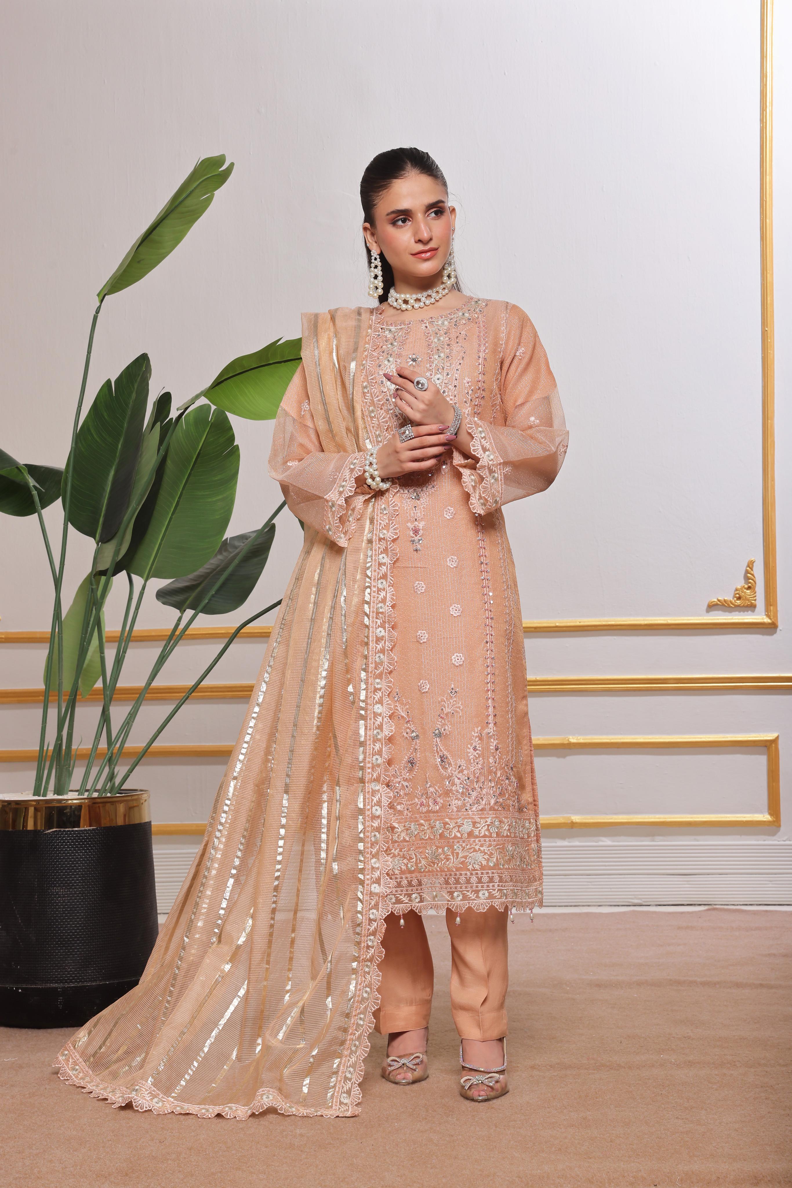 Semi-stitched Zari Aiyudiya Net shirt — elegantly adorned with soft shimmer, airy flow, and a designer fall, perfect for tailored fitting.