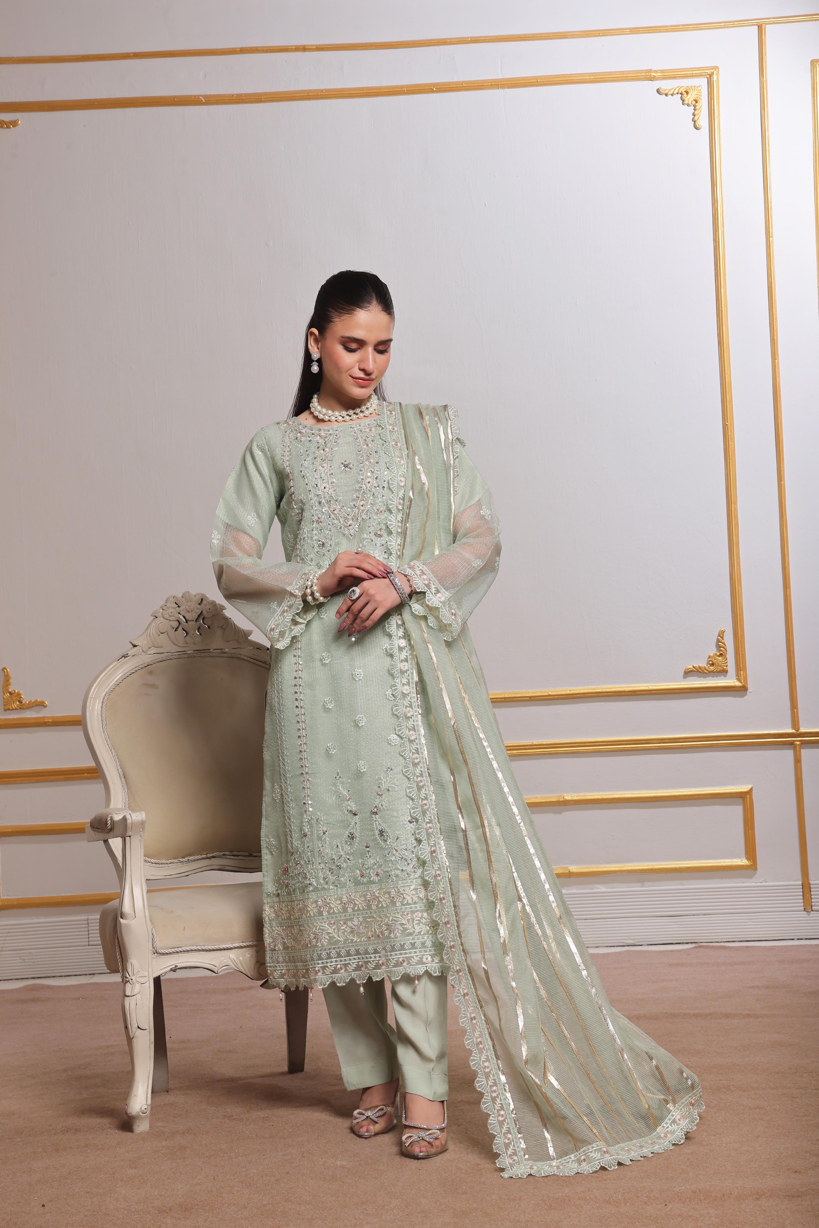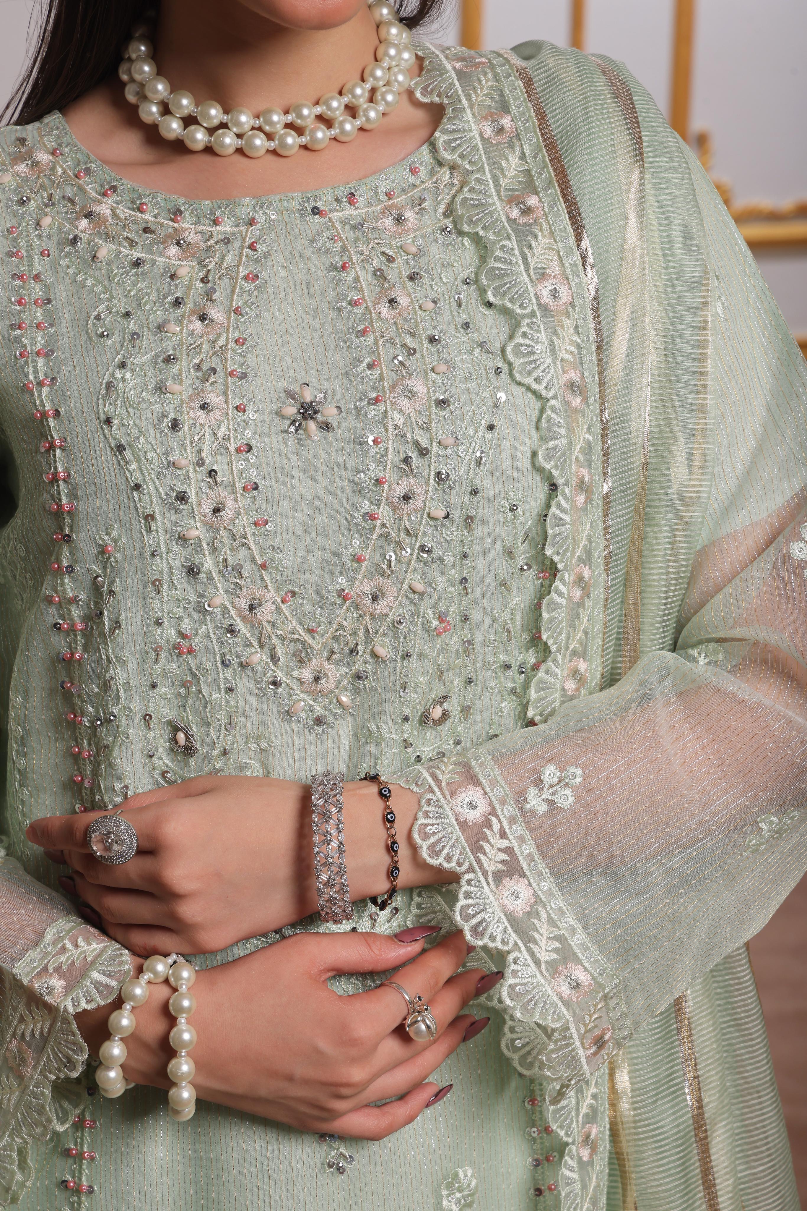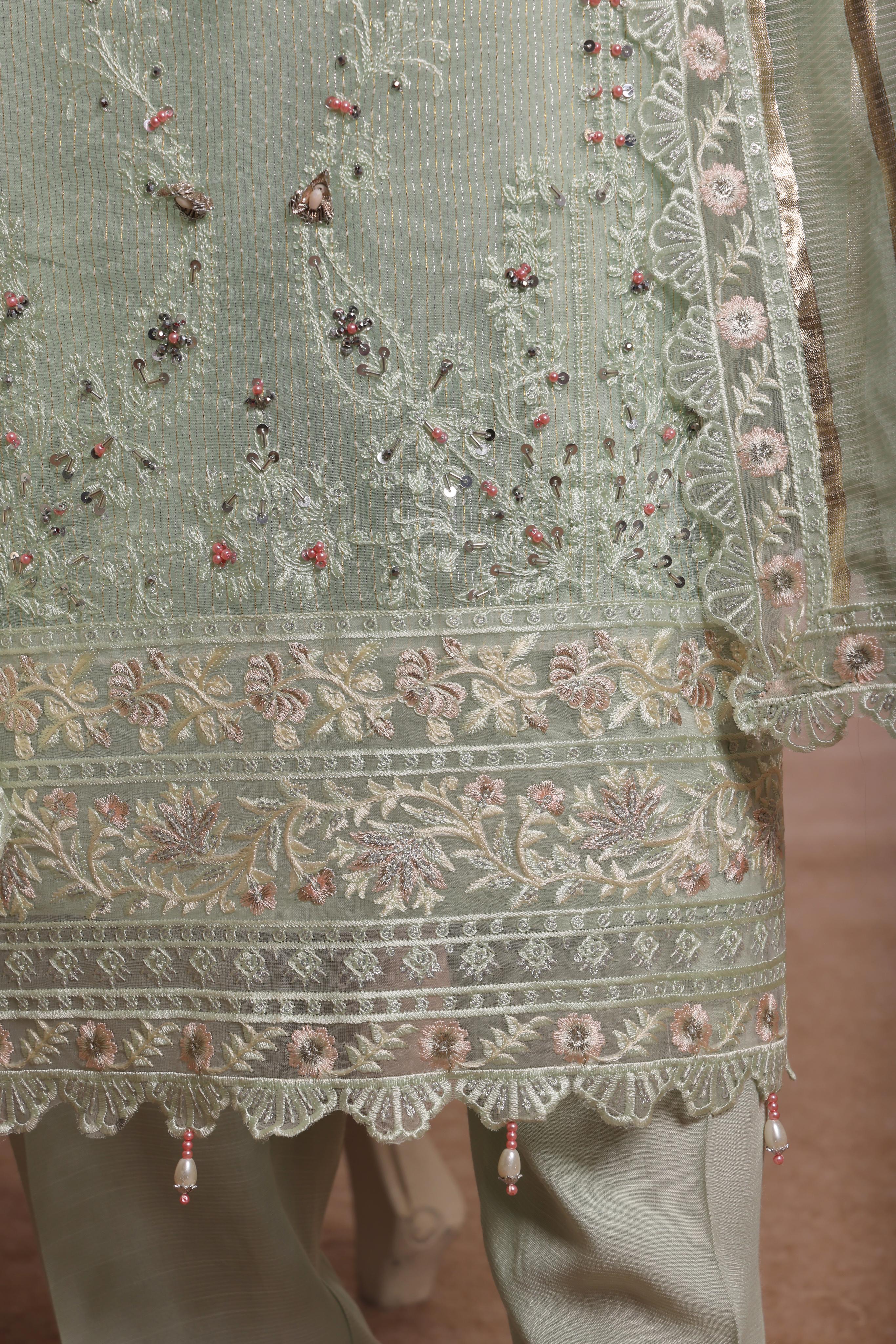 Semi-stitched Zari Aiyudiya Net shirt — elegantly adorned with soft shimmer, airy flow, and a designer fall, perfect for tailored fitting. -
