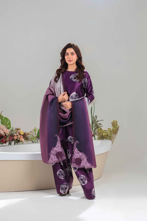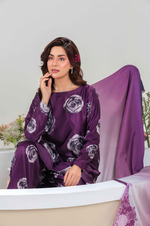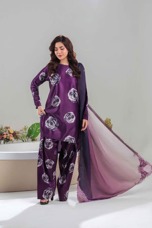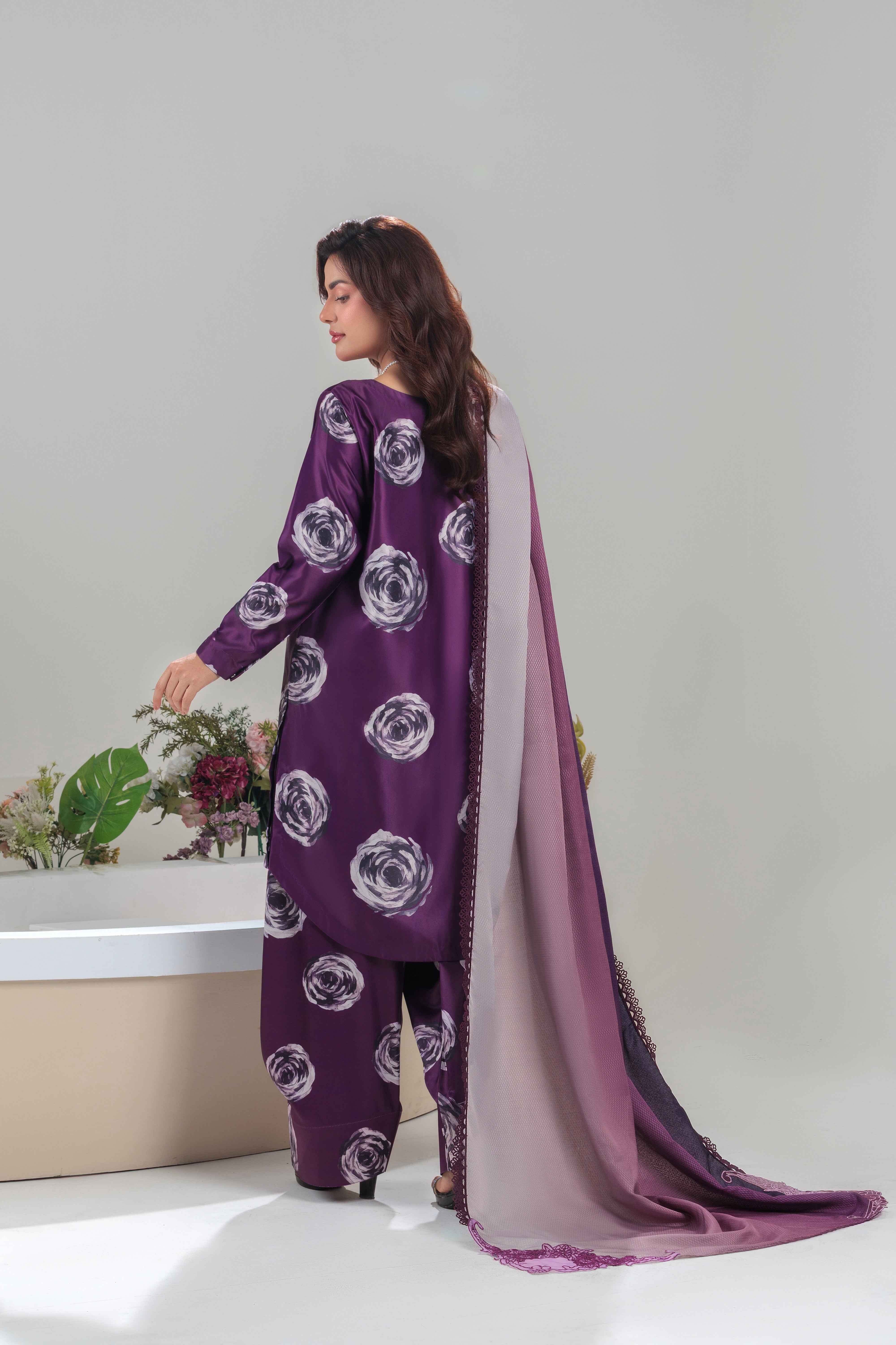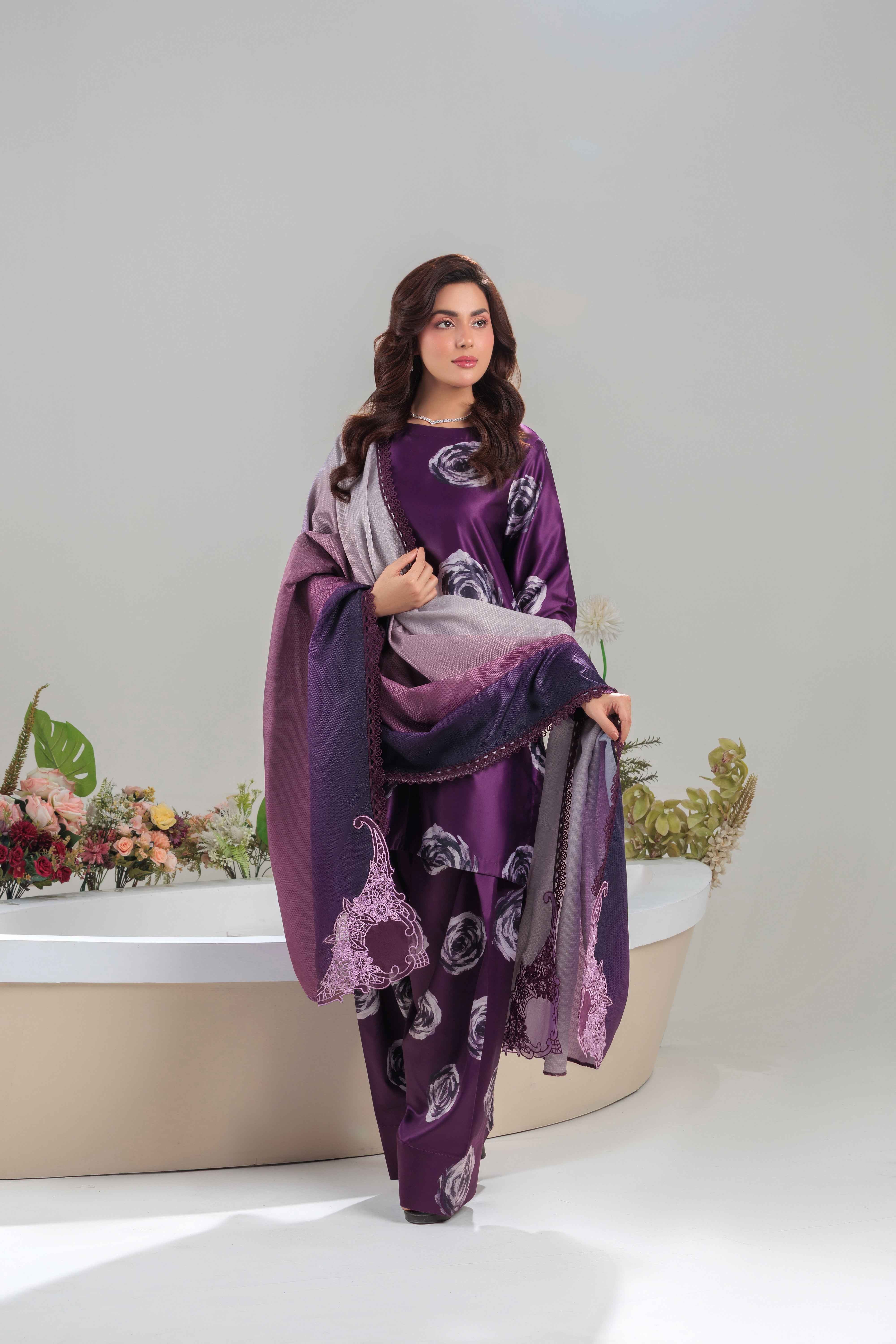 Vibrant Aura By Huma Gul Unstitched 3 Piece Satin Silk Edit Collection'2025-Rosae HG-208