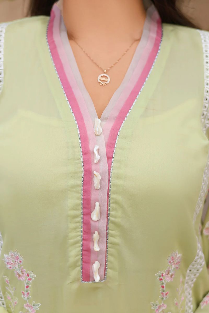 - Embroidered lawn sleeves Embroidered sleeves borders on organza Embroidered shirt back motif on organza Plain lawn back.