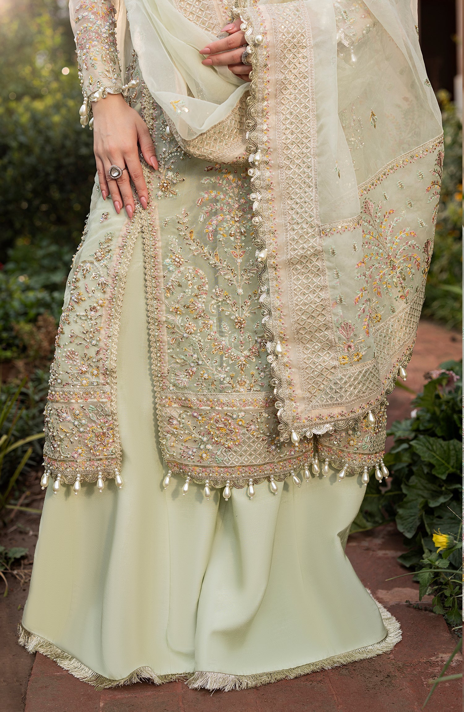 HAND EMBELLISHED DAMMAN BORDER FRONT (ORGANZA)