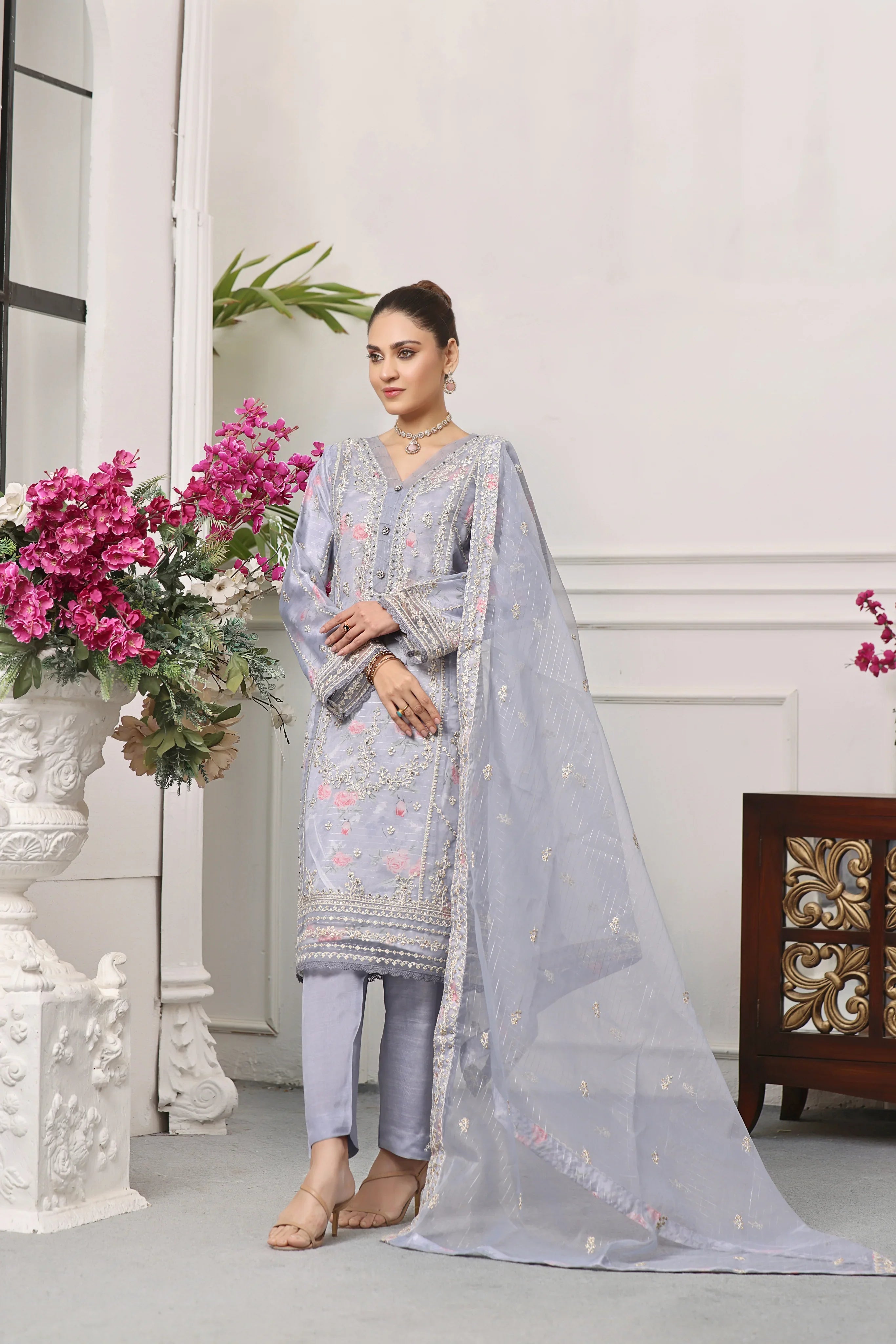 Dressline Semi Stitched 3 Pc Emb Luxury Organza Clutches Collection