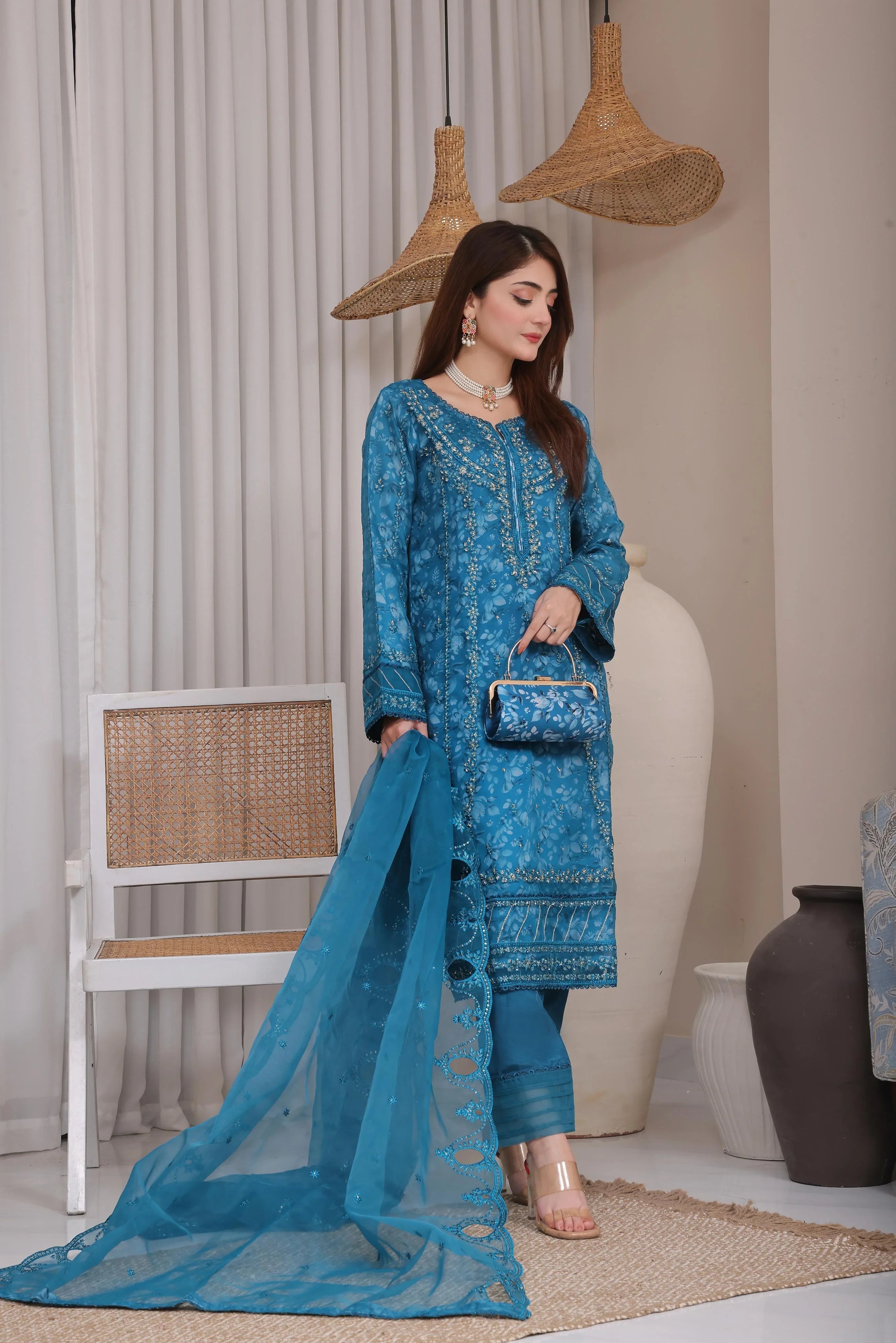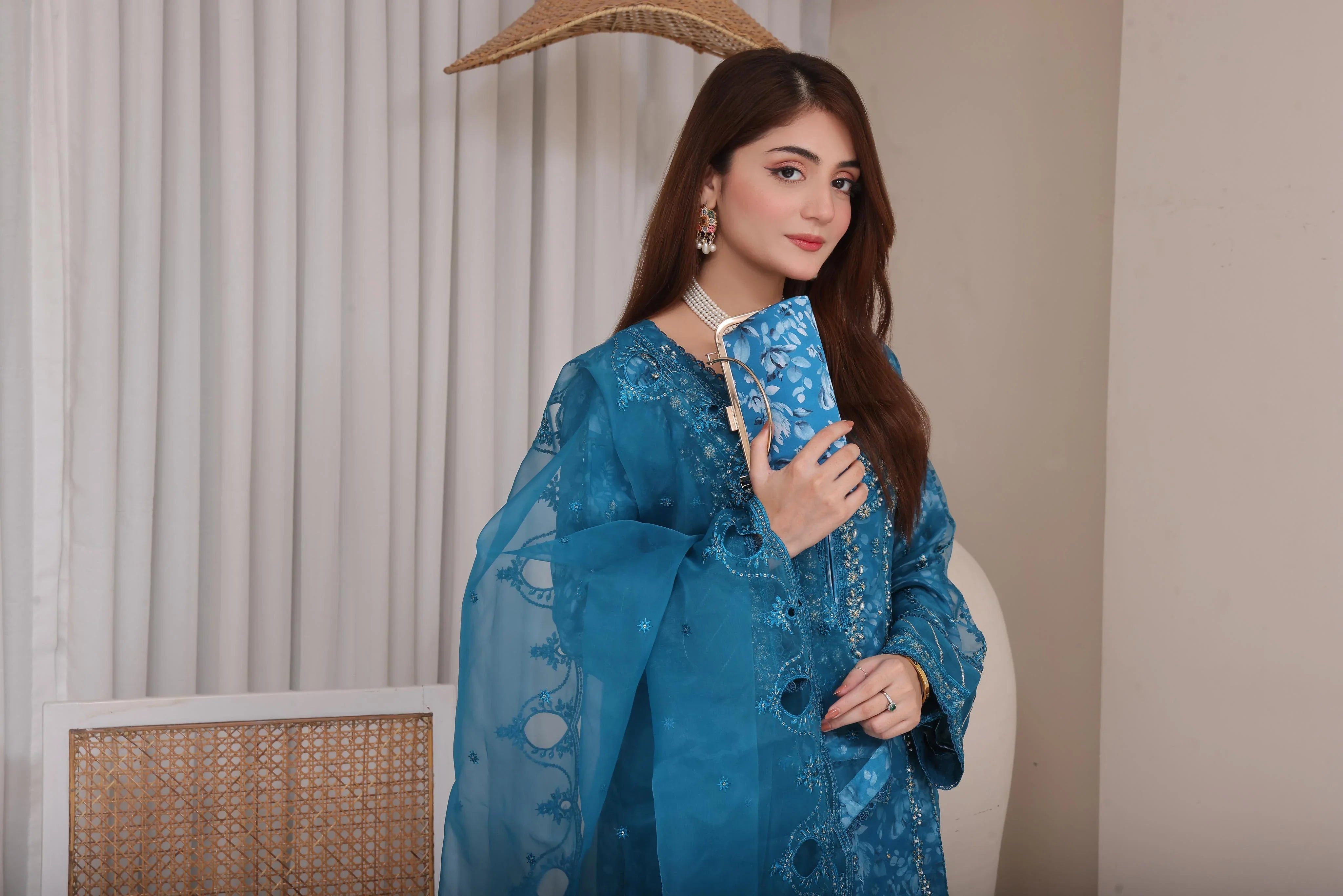 Dressline Semi Stitched 3 Pc Emb Luxury Organza Clutches Collection