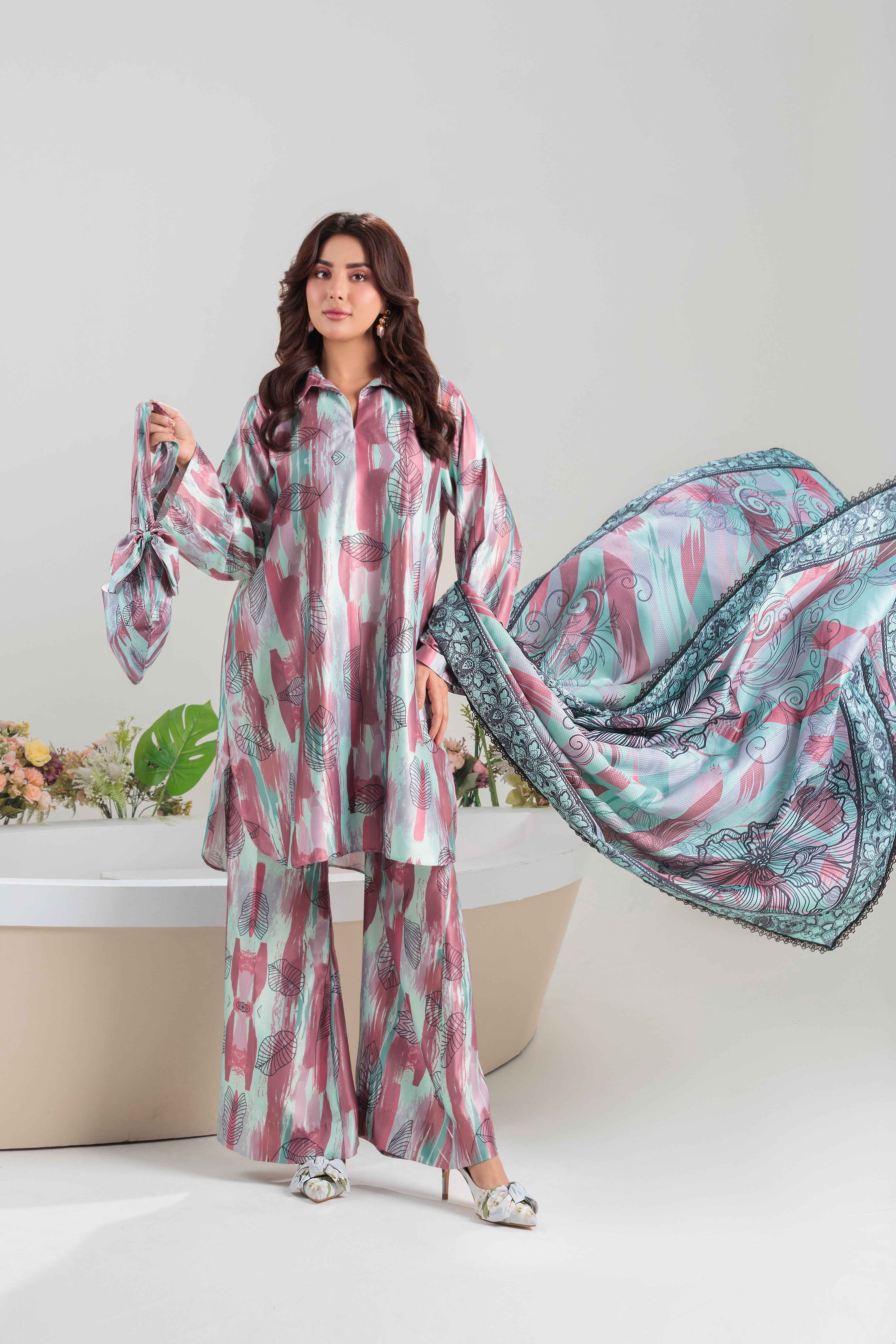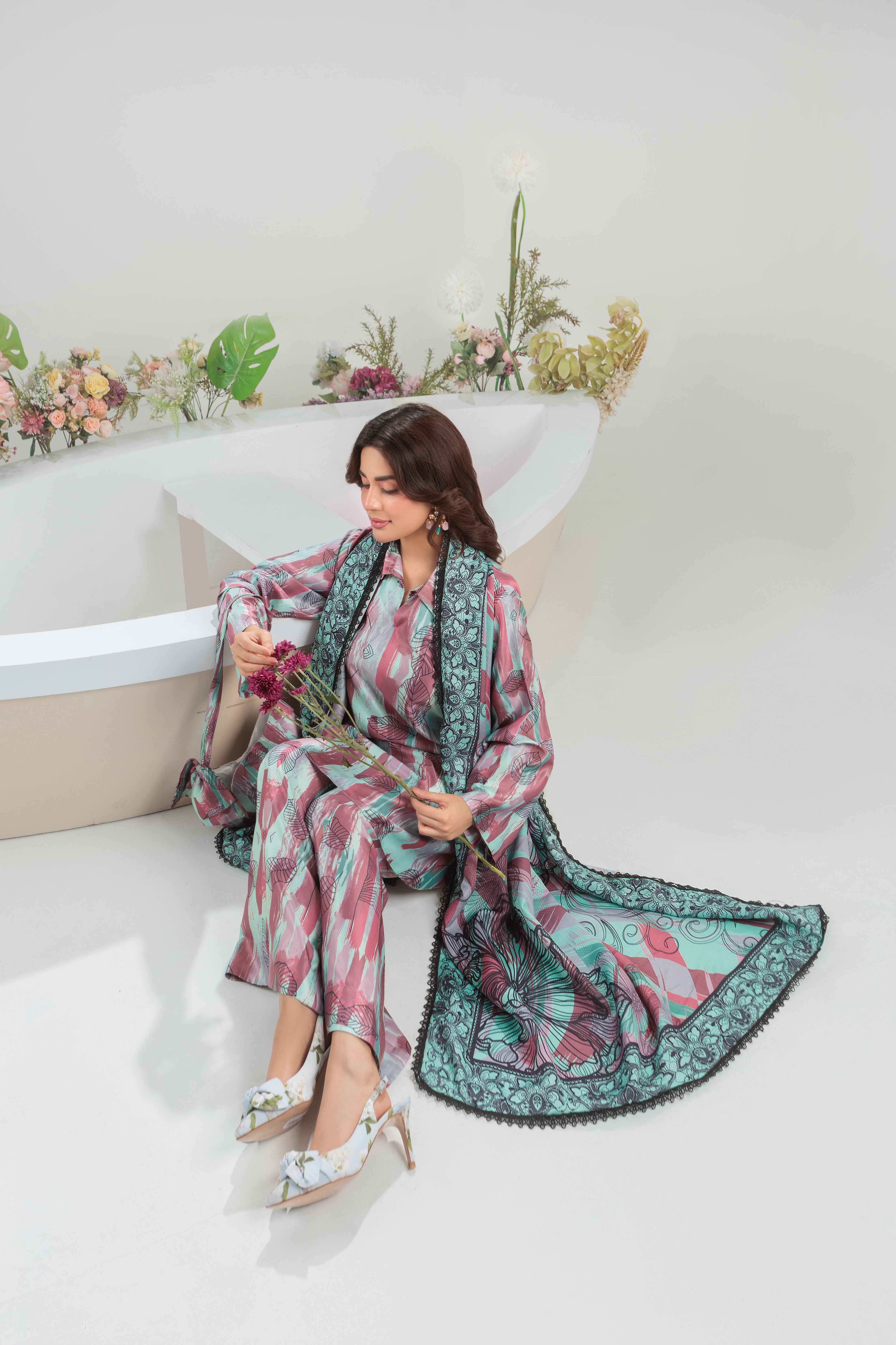 Vibrant Aura By Huma Gul Unstitched 3 Piece Satin Silk Edit Collection'2025-Silvara HG-202