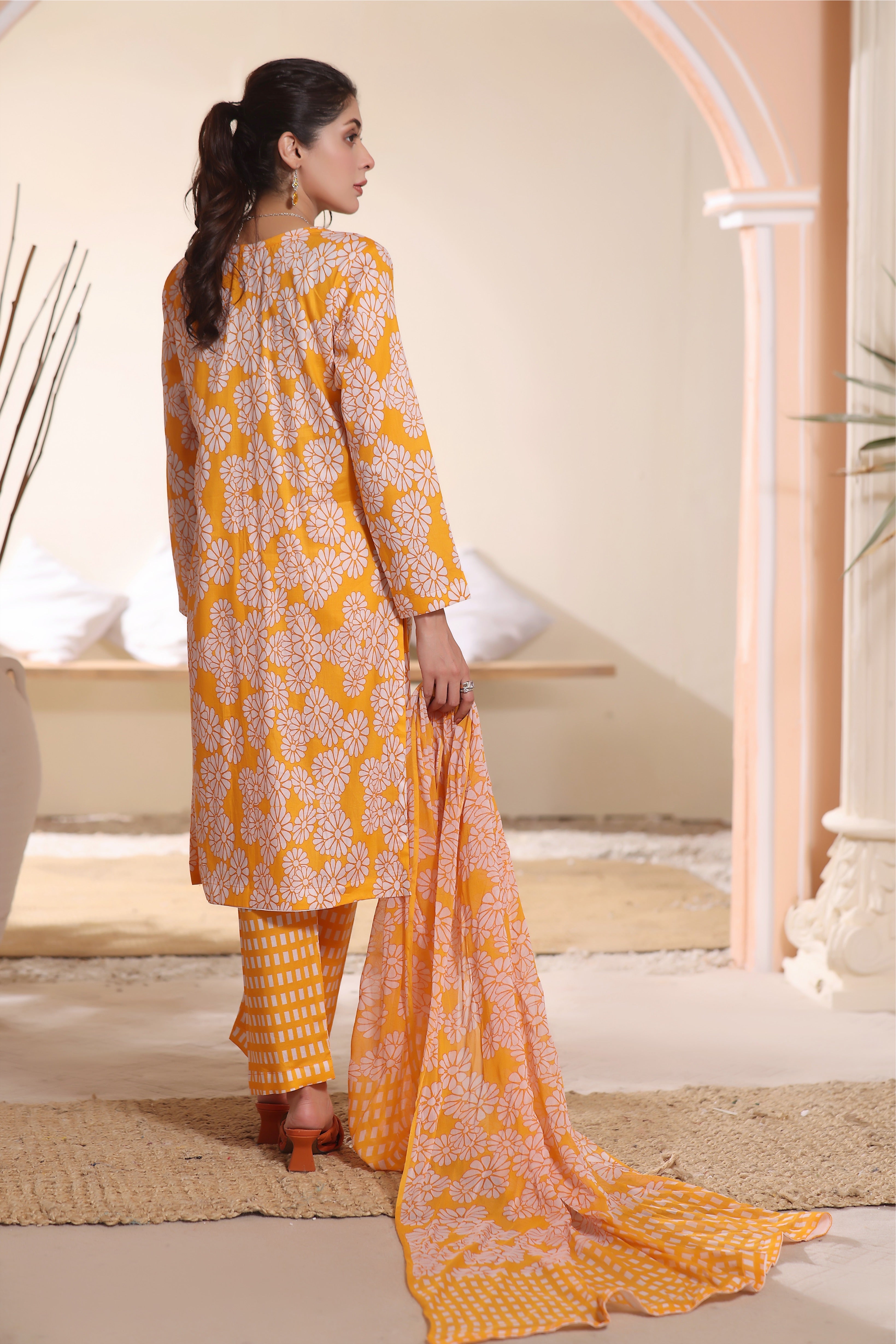 The article includes:Unstitched 3PCDigital Printed Shirt 3 yardsDigital Printed Chiffon Dupatta Digital Printed Trouser 2.5 yards