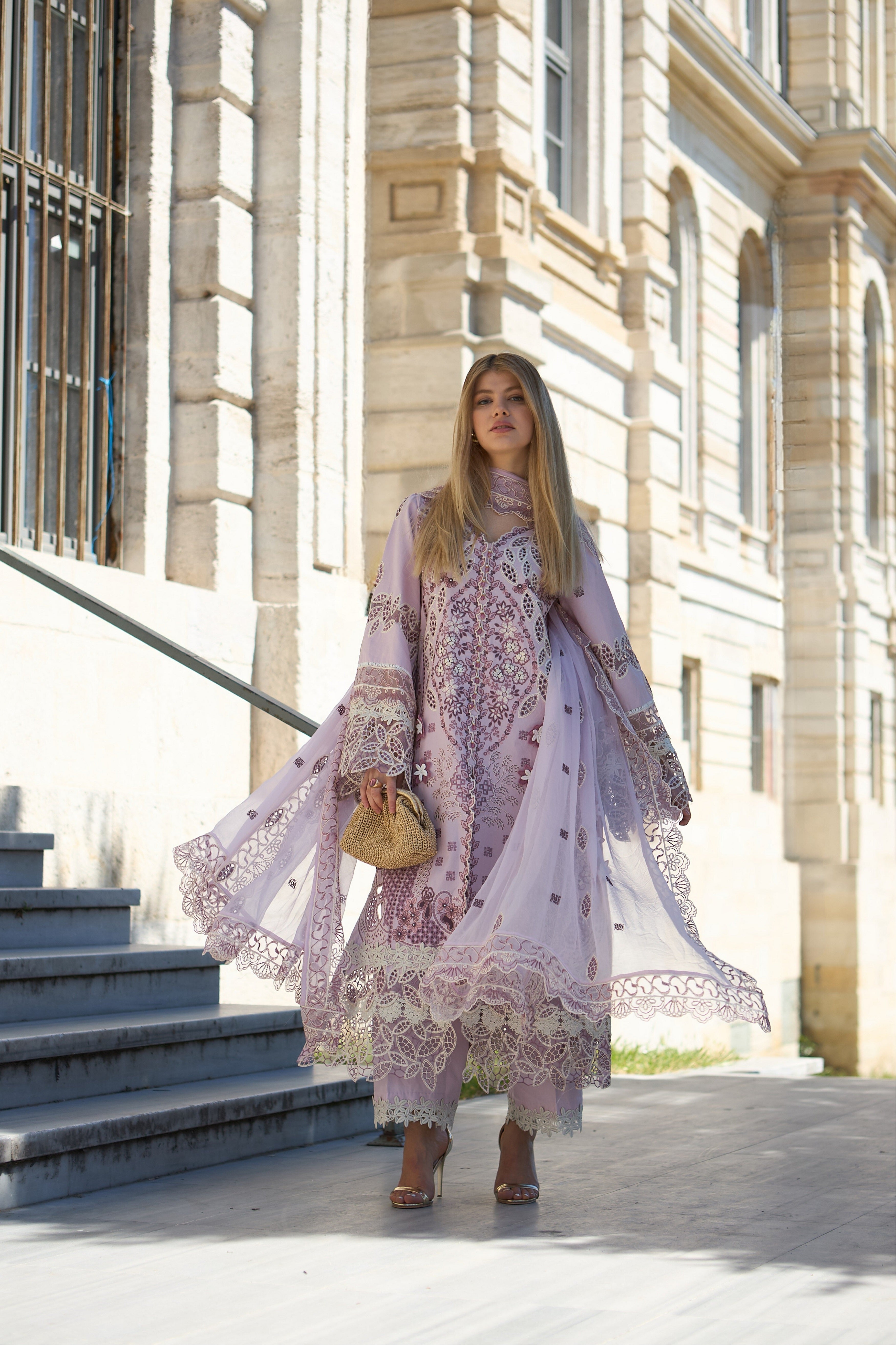 Geometrical & floral boring patterns & heavy elegance embroidery