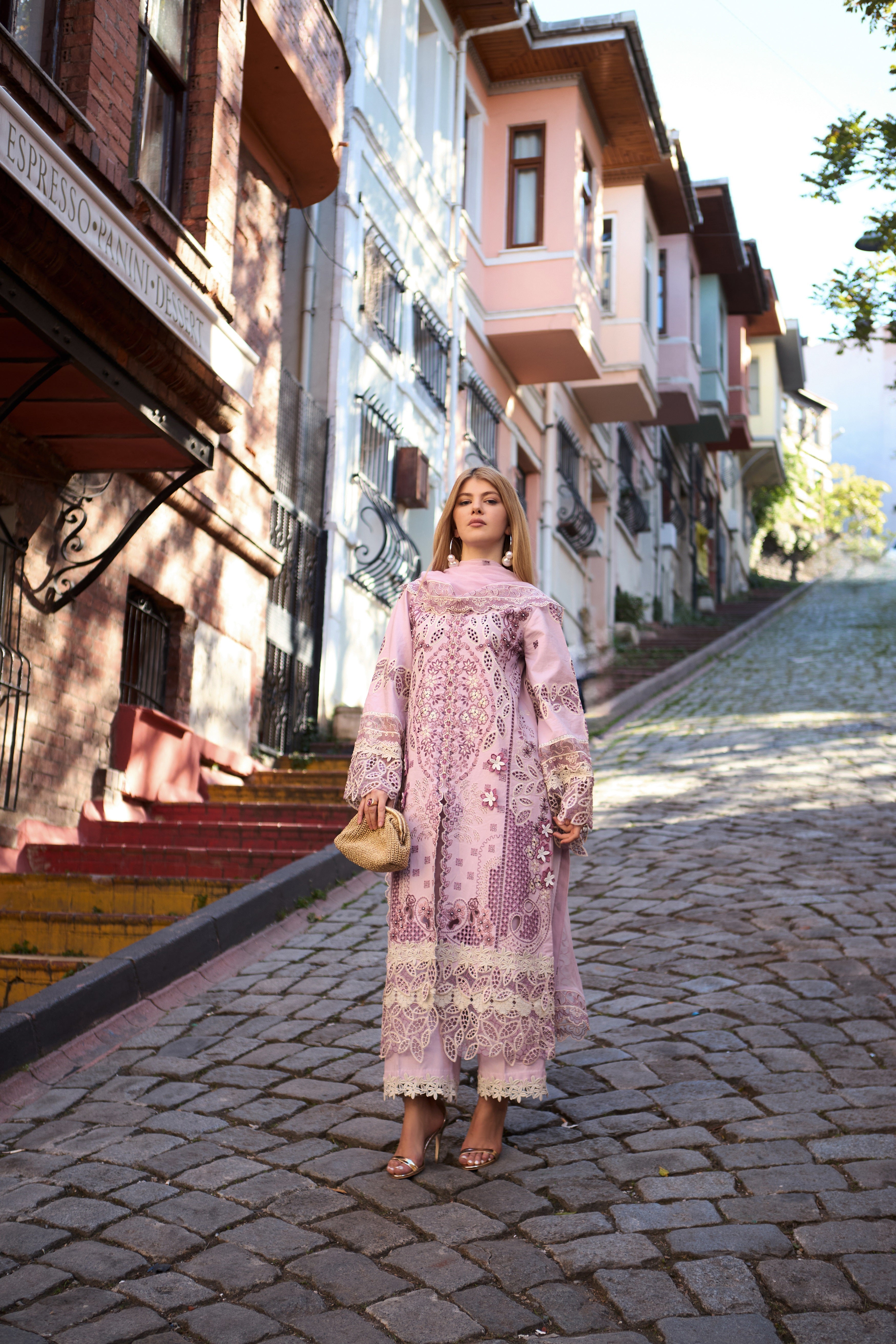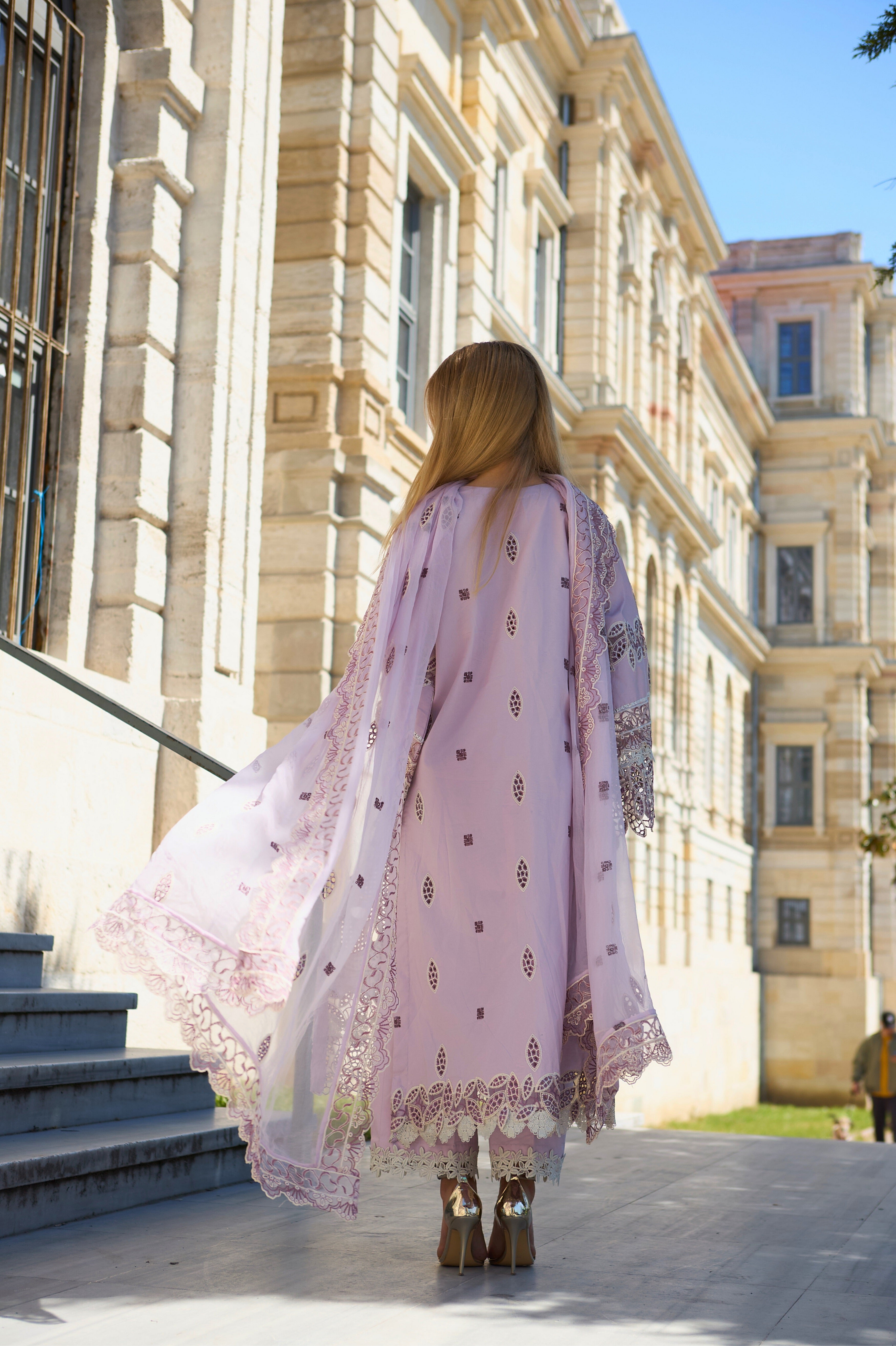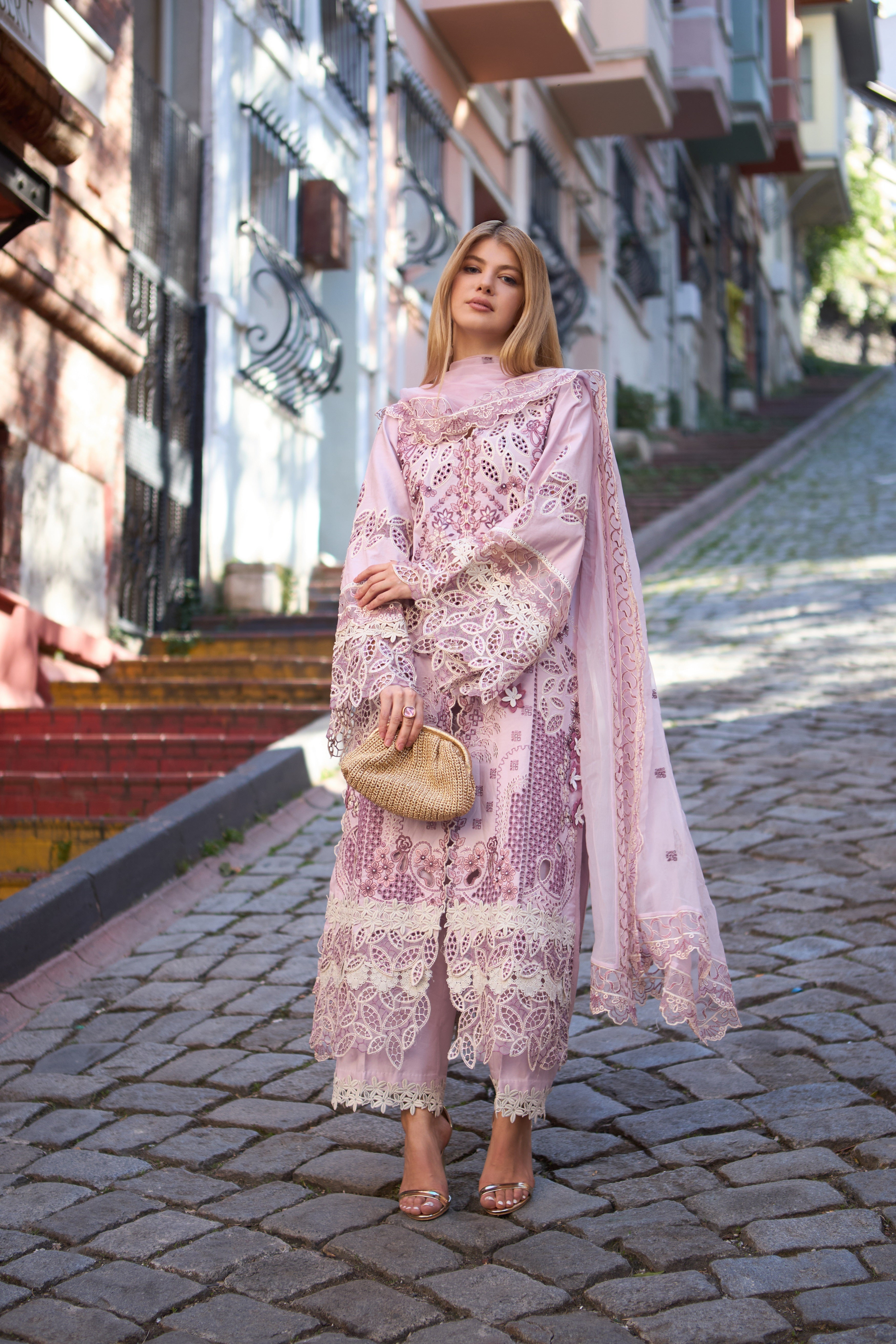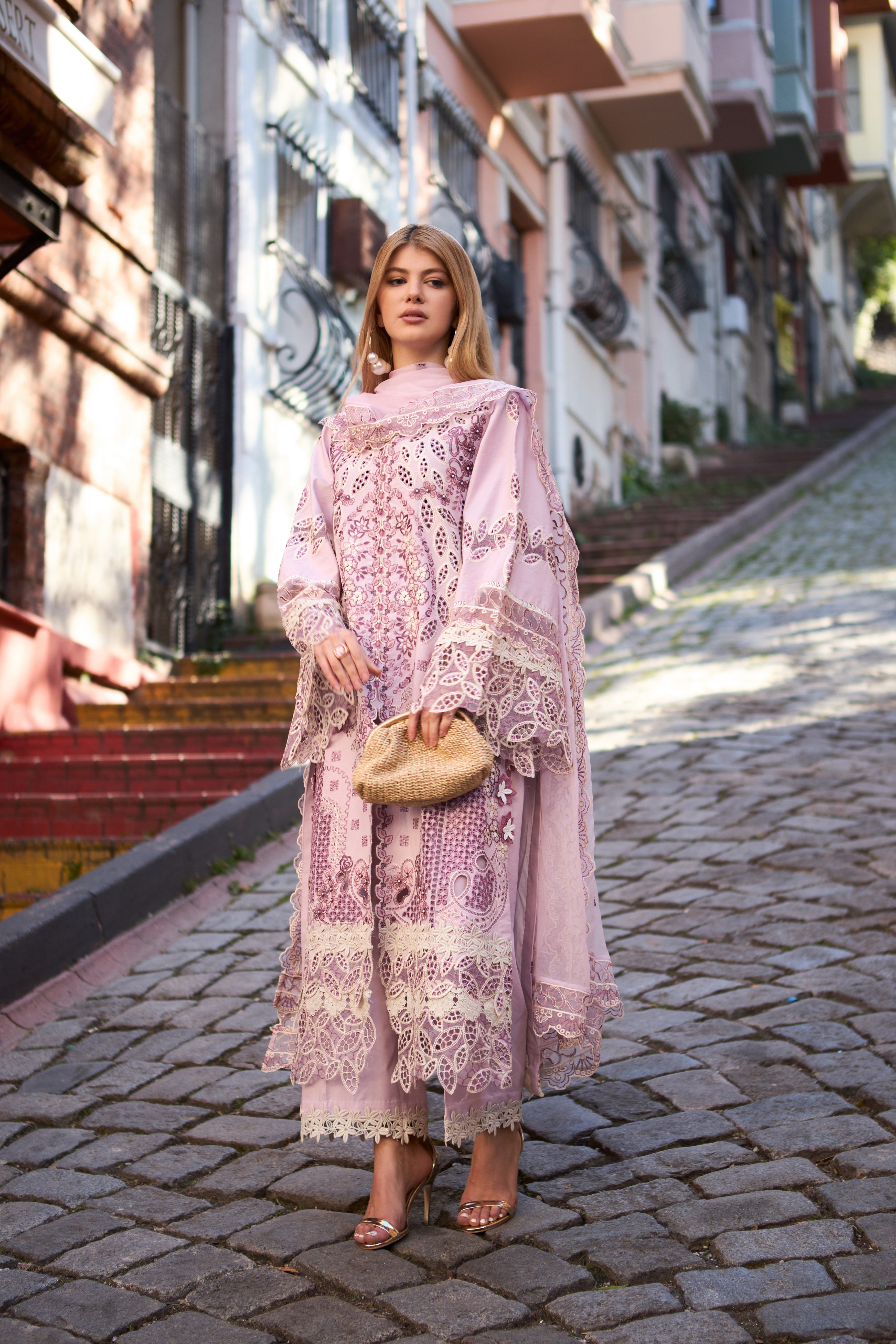 Plain color cotton lawn edging with floral same front lace trouser