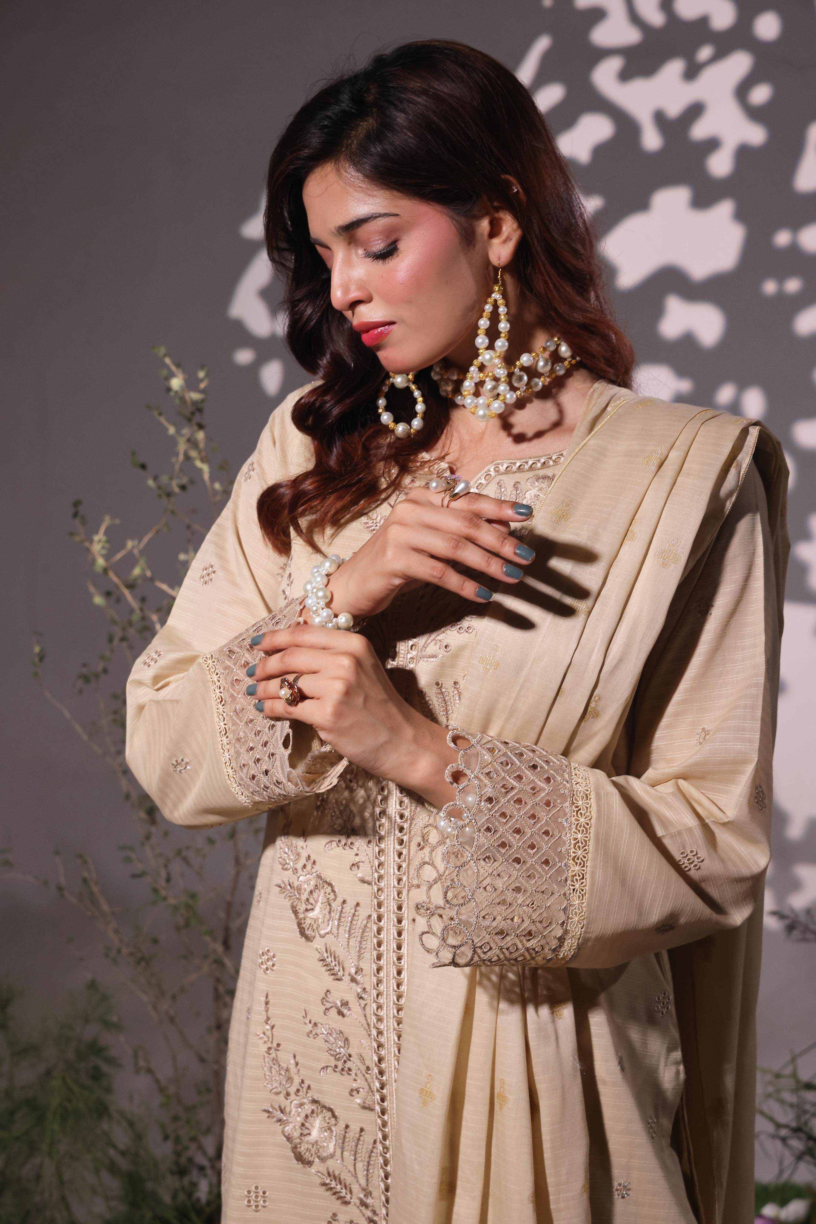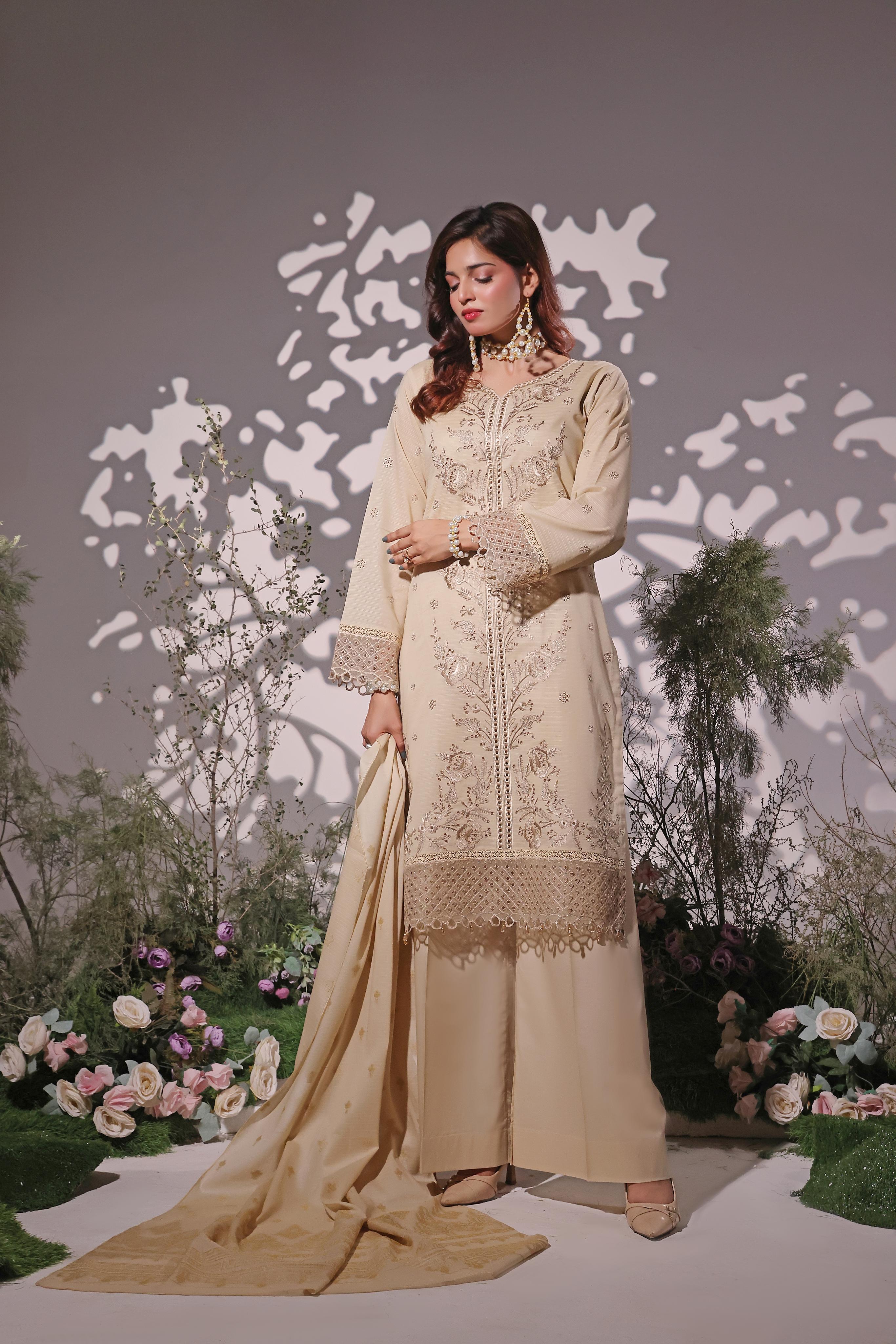 Exquisitely crafted with luxury heavy Chiken-Kari & Laser-Kari embroidered Bana Dora Lawn.