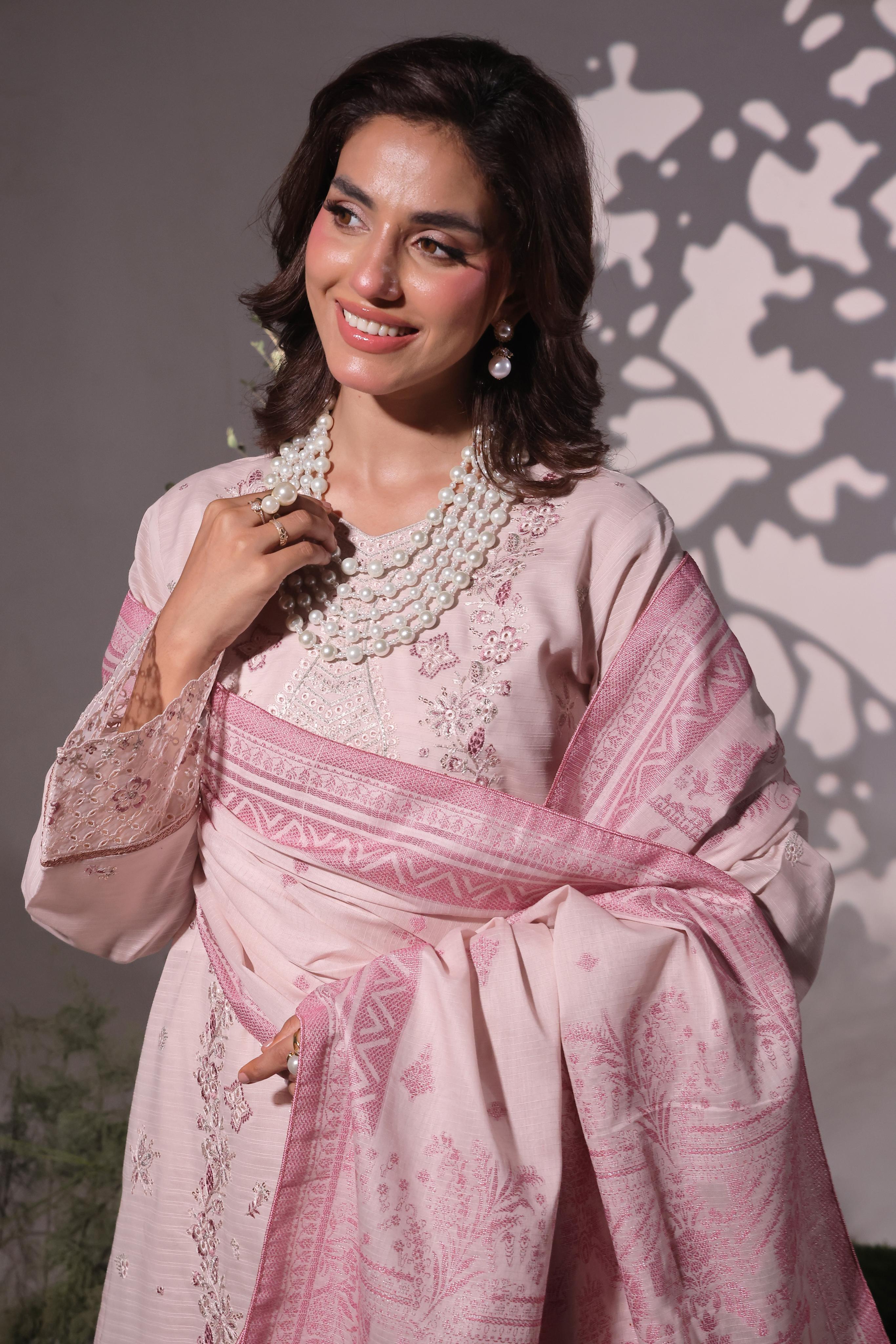 Exquisitely crafted with luxury heavy Chiken-Kari & Laser-Kari embroidered Bana Dora Lawn.