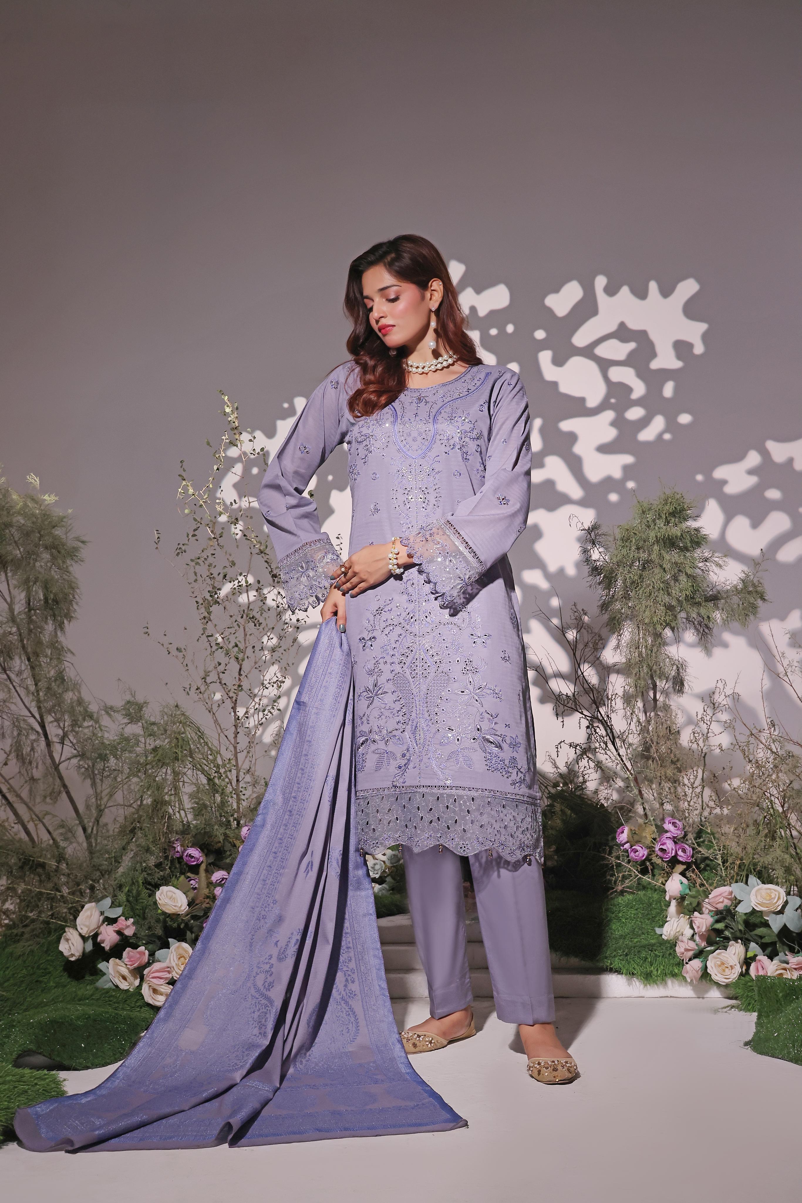 Exquisitely crafted with luxury heavy Chiken-Kari & Laser-Kari embroidered Bana Dora Lawn.