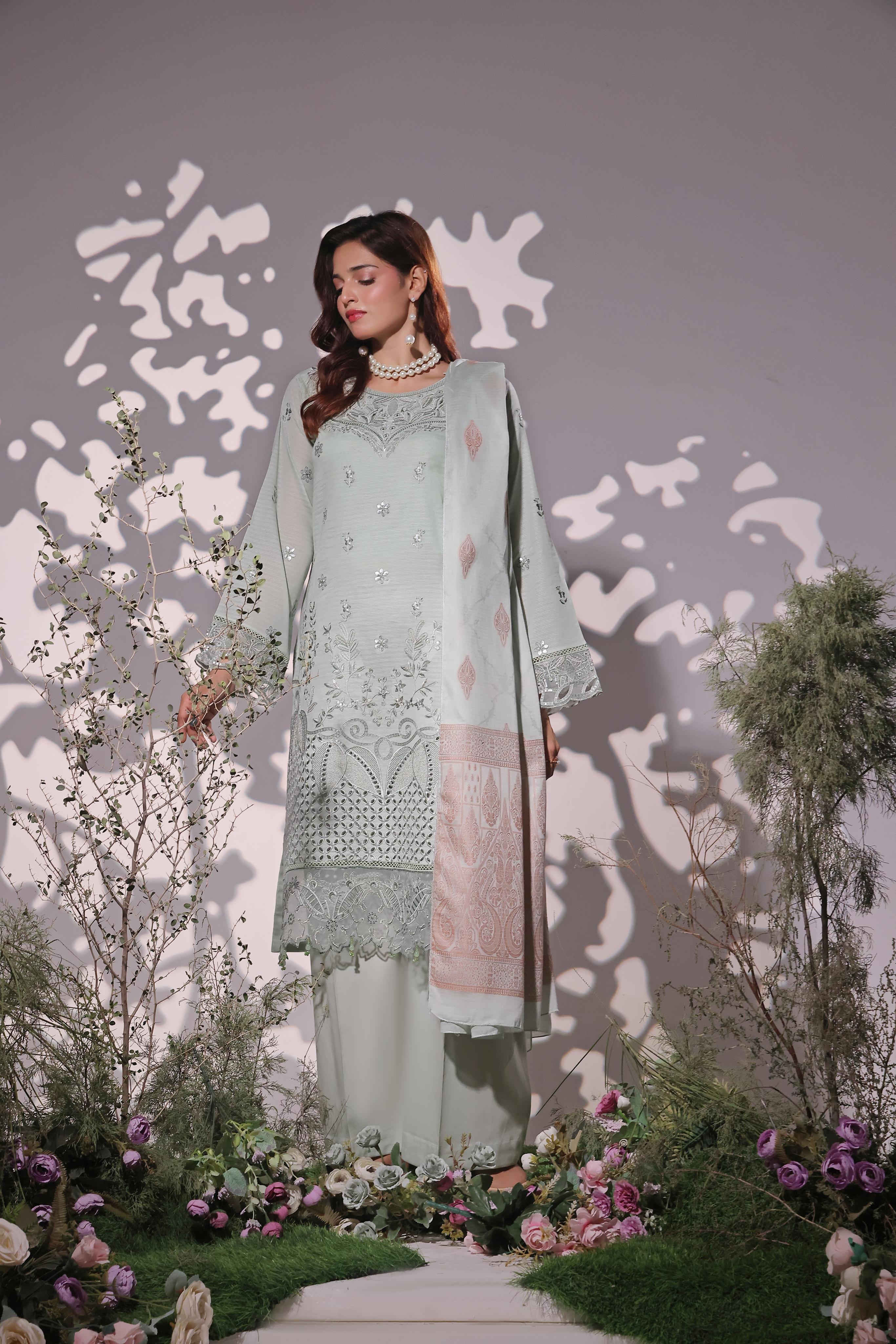 Exquisitely crafted with luxury heavy Chiken-Kari & Laser-Kari embroidered Bana Dora Lawn.