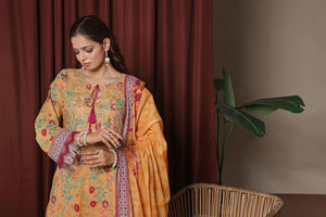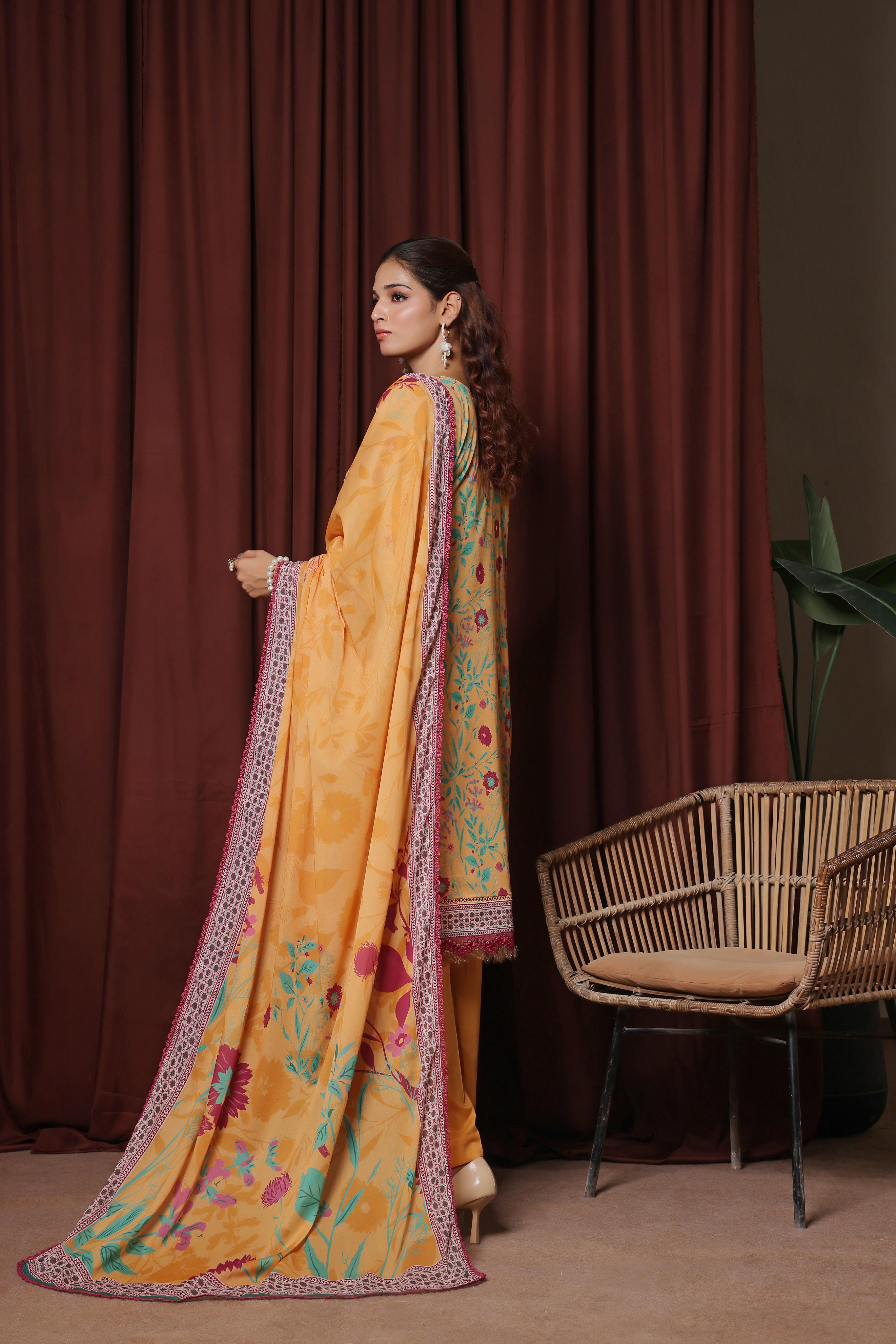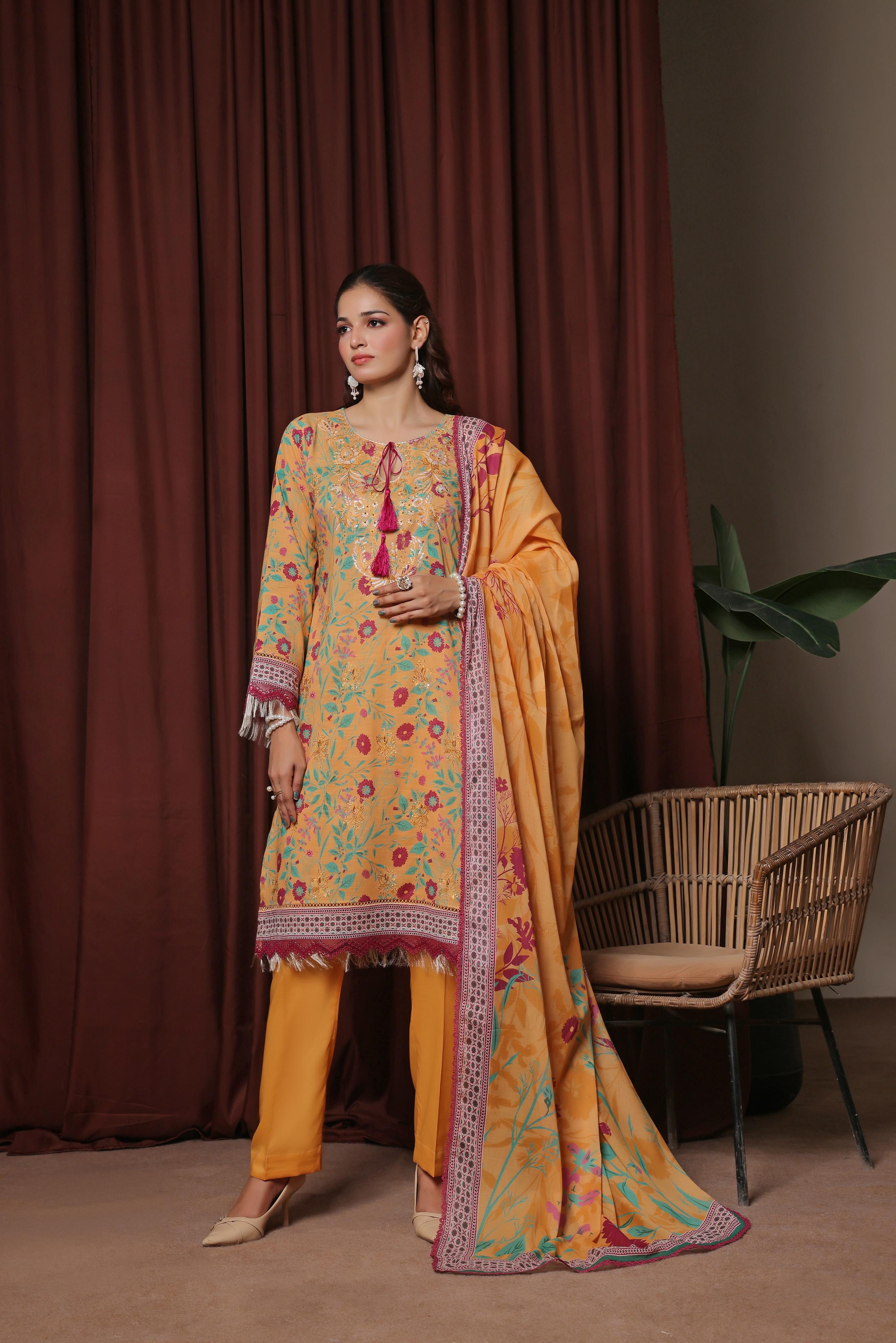 Made from Luxury Heavy Chiken-Kari Embroidered Slub Digital Print Lawn, the shirt features delicate embroidery over a digitally printed canvas, creating a perfect blend of tradition and trend. -
