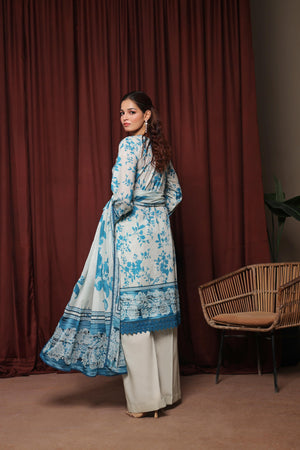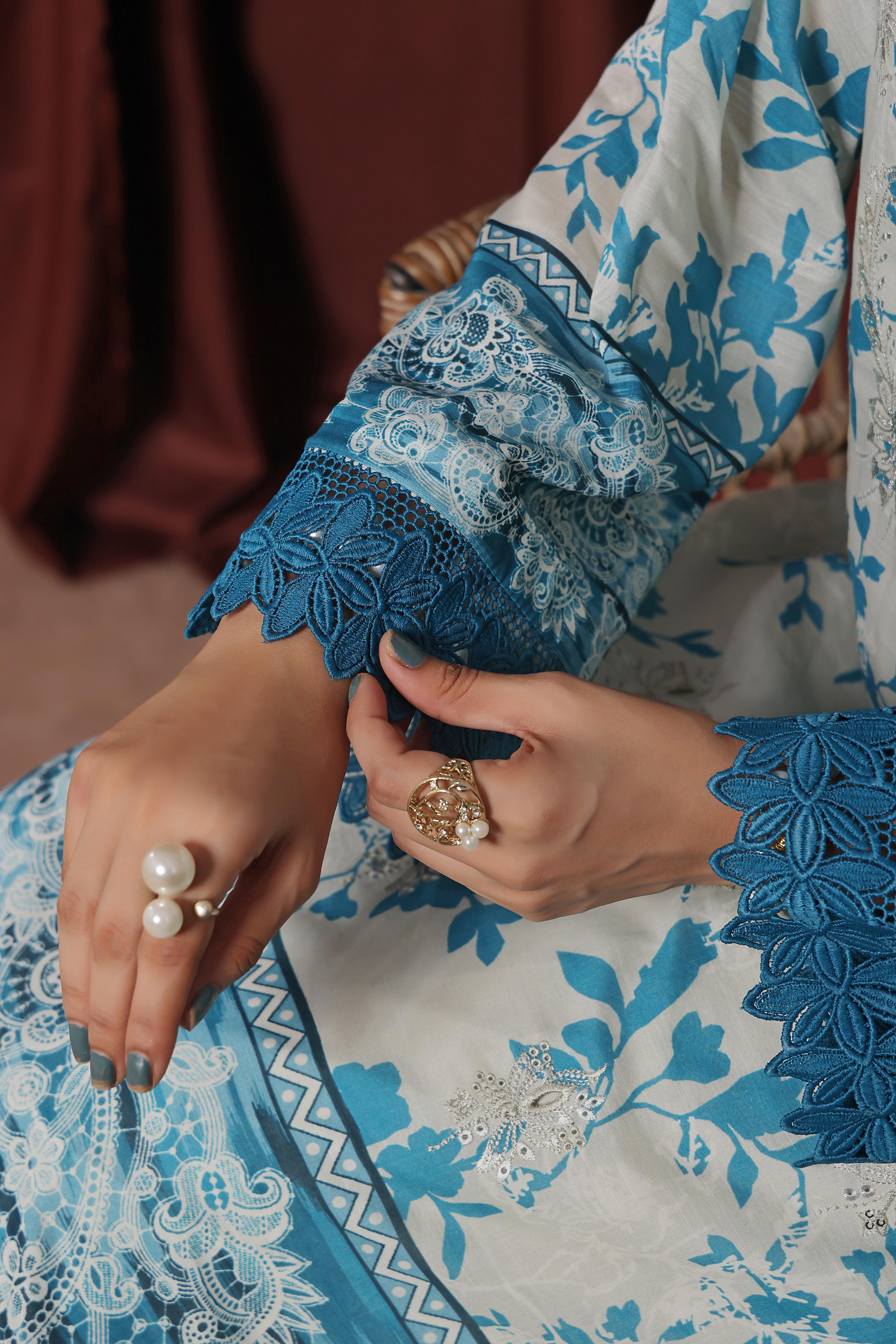 Made from Luxury Heavy Chiken-Kari Embroidered Slub Digital Print Lawn, the shirt features delicate embroidery over a digitally printed canvas, creating a perfect blend of tradition and trend.