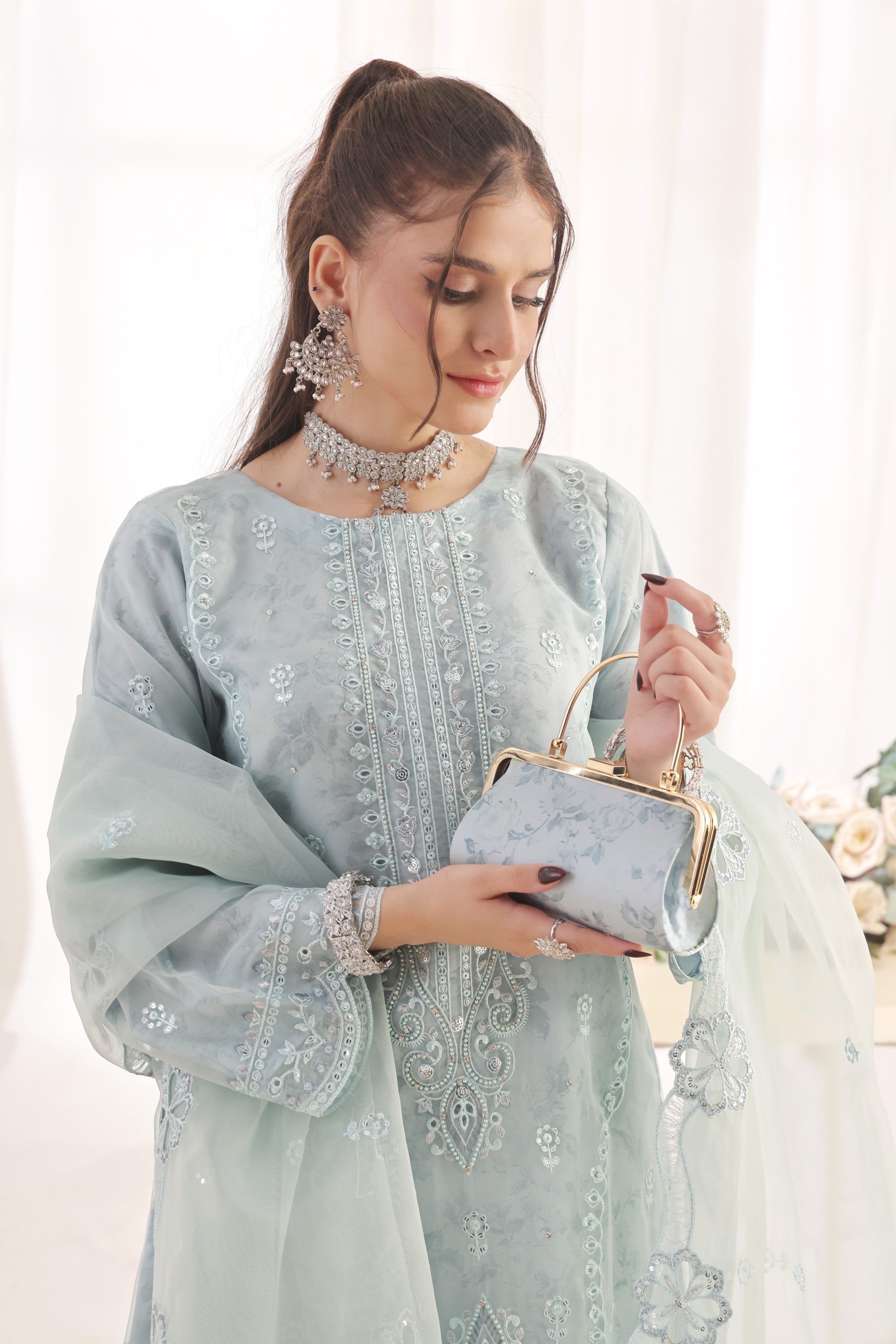 Dressline Xenia Luxury Emb Organza Clutches Collection 3 Piece Semi Stitched