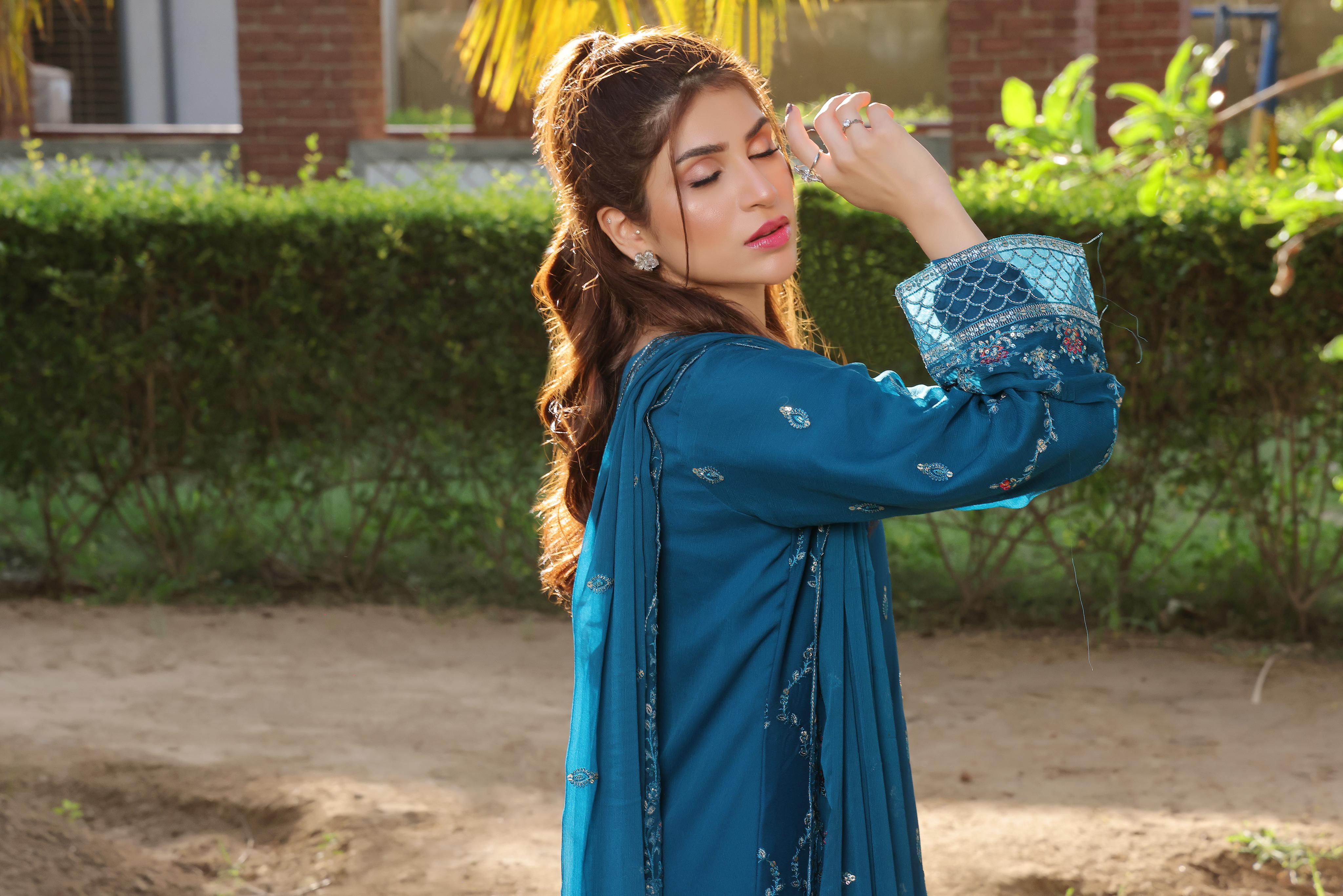 A matching luxury chiffon dupatta — richly embroidered to complement the shirt’s finesse, adding a layer of elegance and flow.