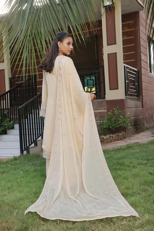 A matching luxury chiffon dupatta — richly embroidered to complement the shirt’s finesse, adding a layer of elegance and flow.