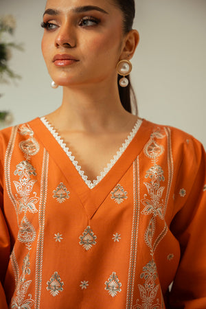 Serene By Zouj Stitched Co Ords Emb Cotton Suit-Rust