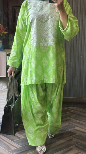 Urban Cut 2 Piece Cotton Embroidred Co- Ord Set with Farshi Salwar