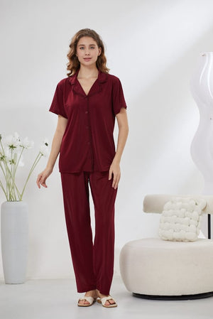 4-Piece Pure Silk Nightwear Set - Rosvian Maroon