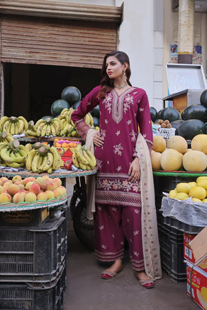 Ready-to-wear BanaDora lawn shirt — richly embroidered with festive patterns that reflect grace and seasonal charm. Crafted to offer a blend of luxury and comfort for special occasions.
