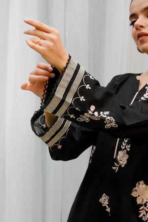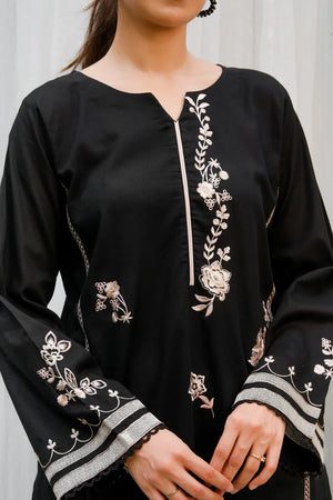 Dhaga Stitched 2 Piece Co Ords Summer Collection'2025-Black Embroidered