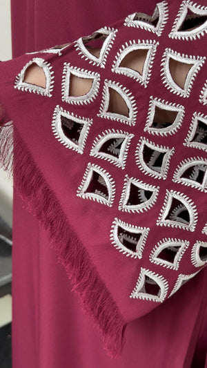 Burgundy Maroon Embroidered Cut Work on sleeves ϬϬ