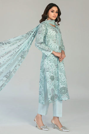 - Cutwork Embroidered Digital Printed Chiffon Dupatta