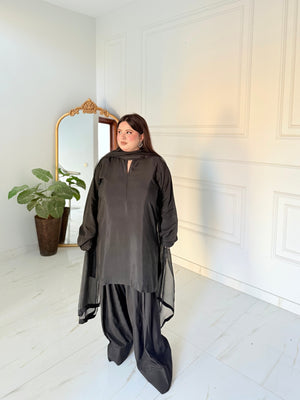 Manahils Stitched Black Farshi Shalwar Three Pc