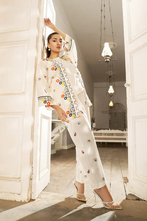 This article consists of a solid 3-piece set with an intricate embroidery detail touch on the shirt and trousers. The outfit consists of a mid-length style shirt and fitted pants.