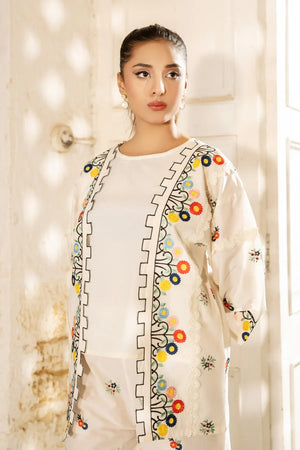 Dhaga Stitched 3 Piece Summer Suit-Ivorya