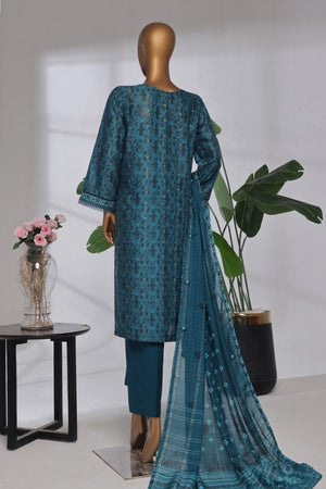 Damask By HZ Stitched 3 Piece Prints Jacquard Collection'2025-DPJ-034-Turquoise
