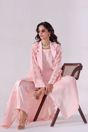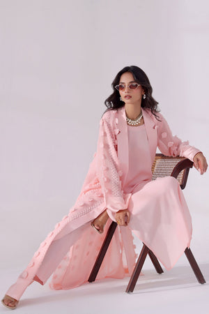 Turn heads with this elegant Soft Pink Long Overlay Set, crafted for modern women who love timeless sophistication. The set features a beautifully designed long overlay with collar and functional pockets, perfectly paired with a sleek inner shirt and tailored straight pants.
