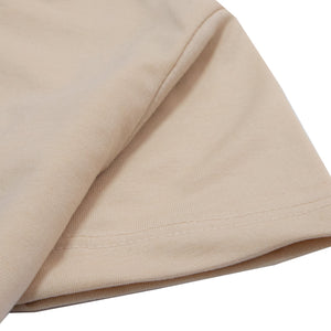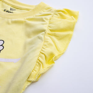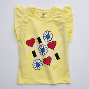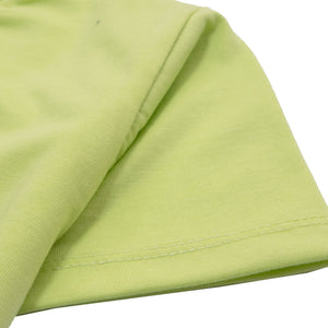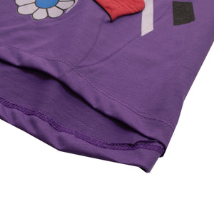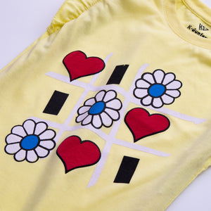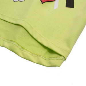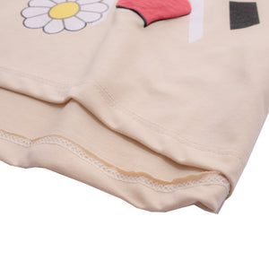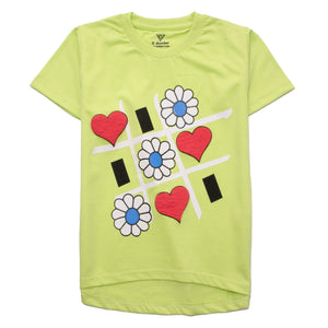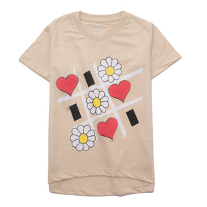 This shirt features a round neckline and short sleeves, with a graphic print on its body.