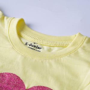 Introducing our delightful Girls' Printed T-shirt, a charming addition to any young fashionista's wardrobe! Crafted from a premium cotton jersey blend fabric, this tee ensures both comfort and durability for all-day wear.