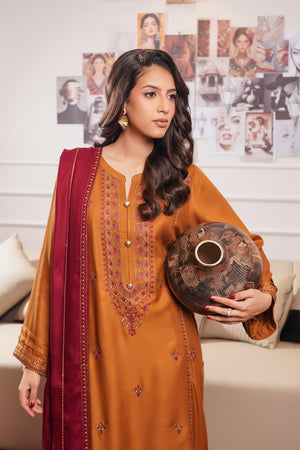 Modern Modesty By G Basics Gulmina Stitched 3 Piece Winter Suit-GOLDEN GLOW (3PC)