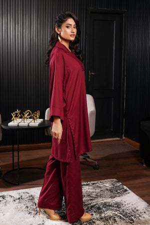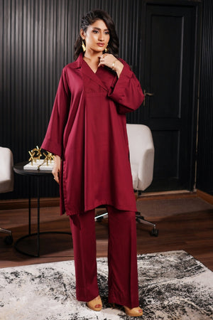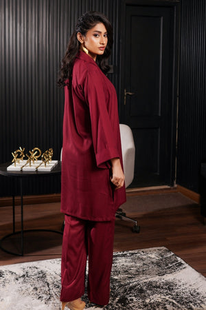 Solids By G Basics Gulmina Stitched 2 Piece Premium Linen Suit-Crimson (2PC)