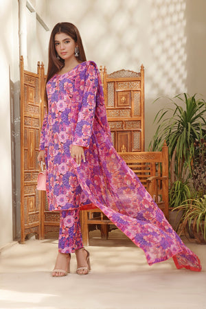 Experience ExquisitelyThis suit is for a new goes this summer seasonThe article includes:Unstitched 3PCDigital Printed Shirt 3 yardsDigital Printed Chiffon Dupatta Digital Printed Trouser 2.5 yards