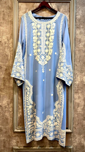Manahils Stitched Ice Blue Embroidered Two Pc