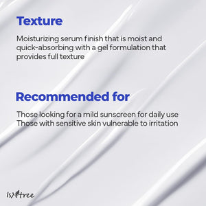 Meet this gentle gel-type sunscreen, enriched with 10 types of Hyaluronic Acid, meticulously formulated to deliver long-lasting hydration. Perfect for daily use, this lightweight chemical SPF, ensures no white cast while providing deep moisture with its unique blend of 10 types of hyaluronic acid, offering your skin a refreshing splash of hydration throughout the day.