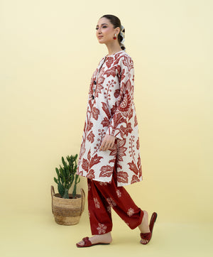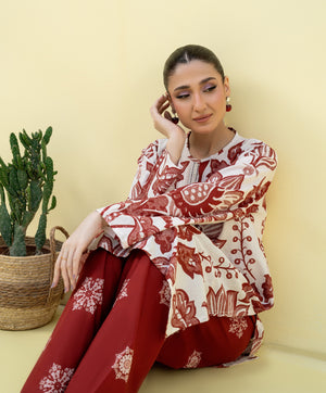 Falling Pretty By Kaanthaa Stitched 2 Piece Summer Suit-Crimson Whirl