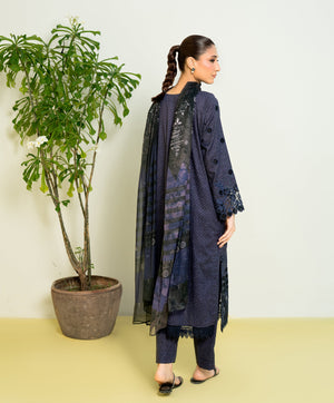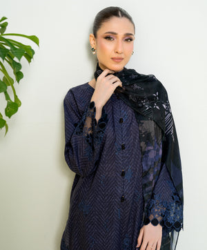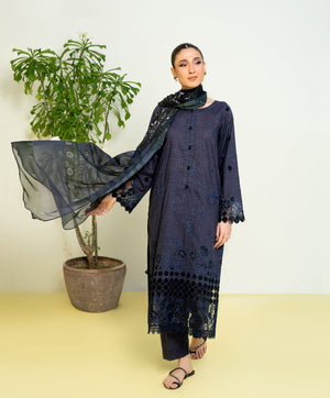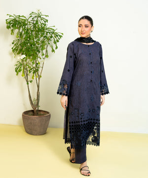 Falling Pretty By Kaanthaa Stitched 3 Piece Summer Suit-Ink Blink