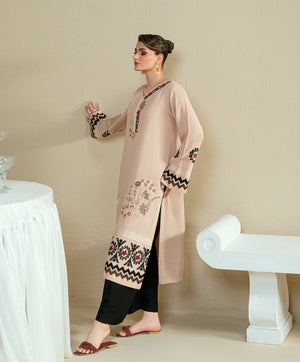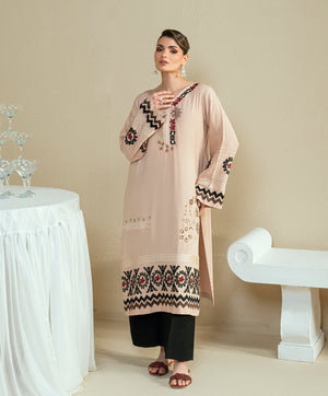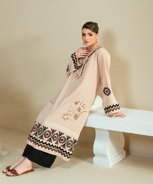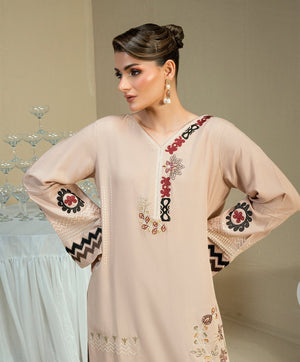 The Thread Line By Kaanthaa Stitched 2 Piece Summer Suit-KEP-01 BEIGE-CROSSHATCH COTTON VISCOSE STITCHED 2PC