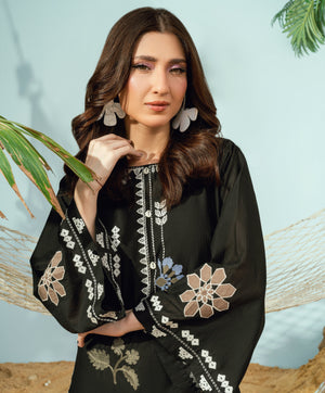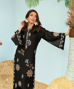 Crafted on breathable dori lawn, this co-ord set showcases linear embroidery and playful contrasting patchwork. Our signature Kaanthaa stitch is carefully incorporated into the design —adding depth and artistry. Presented in Black, it’s a standout piece from our Monsoon Collection, designed to reflect the vibrant, refreshing spirit of the season.