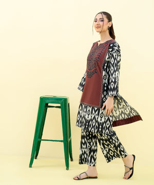 Falling Pretty By Kaanthaa Stitched 2 Piece Summer Suit-Spice Sketch