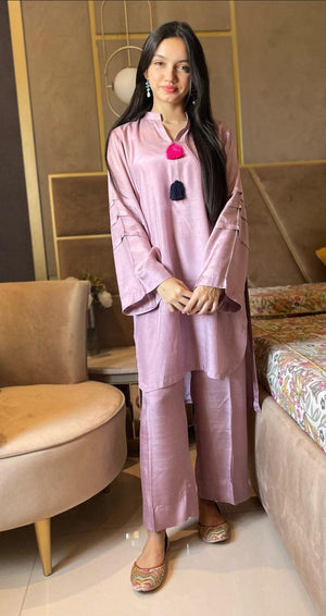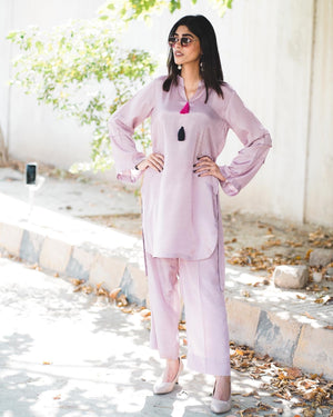 Zauk Stitched 2 Piece Collection-Lilac Two Piece Dress