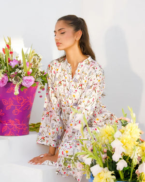 Step up your wardrobe with our exquisite printed Matching separates. This stunning 2-pc enhances intricate button detailing on the neckline of the shirt with convenient side pockets, and perfectly paired trousers.