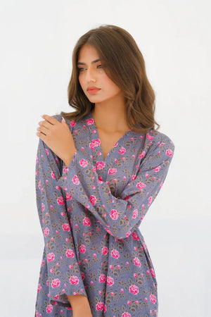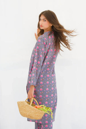 Step up your wardrobe with our exquisite printed Matching separates. This stunning 2-pc enhances intricate button detailing on the neckline of the shirt with convenient side pockets, and perfectly paired trousers.