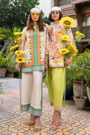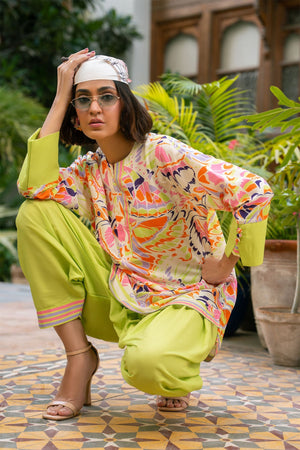Nairah Stitched Co Ords Summer Suit-Neon Aura