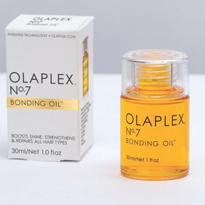 BONDING OIL™ OLAPLEX has created a one-of-a-kind, highly concentrated, nearly weightless repair oil. OLAPLEX NO 7 repairs, strengthens and hydrates all hair types. Significantly increases shine, softness, color vibrancy, while minimizing flyaways and protecting from heat up to 230°C. OLAPLEX NO 7 works on all hair types and textures.