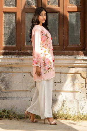 A beautifully printed two-piece featuring intricate floral patterns and a relaxed silhouette. The straight-cut shirt and white trousers offer effortless elegance, perfect for both casual outings and semi-formal occasions.
